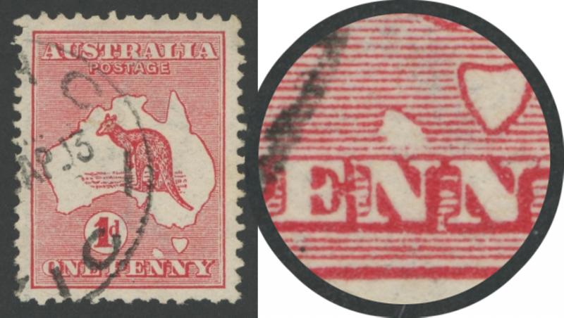 1d red Die II SG 2d Plate E with Extra Island 'Two Tasmanias' (First State with the Shading Lines above 'PENNY' Present) [Pos L25]