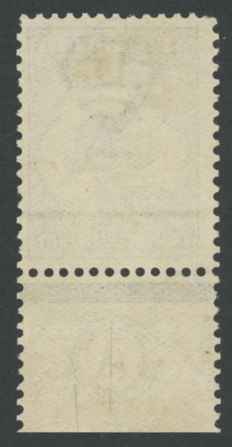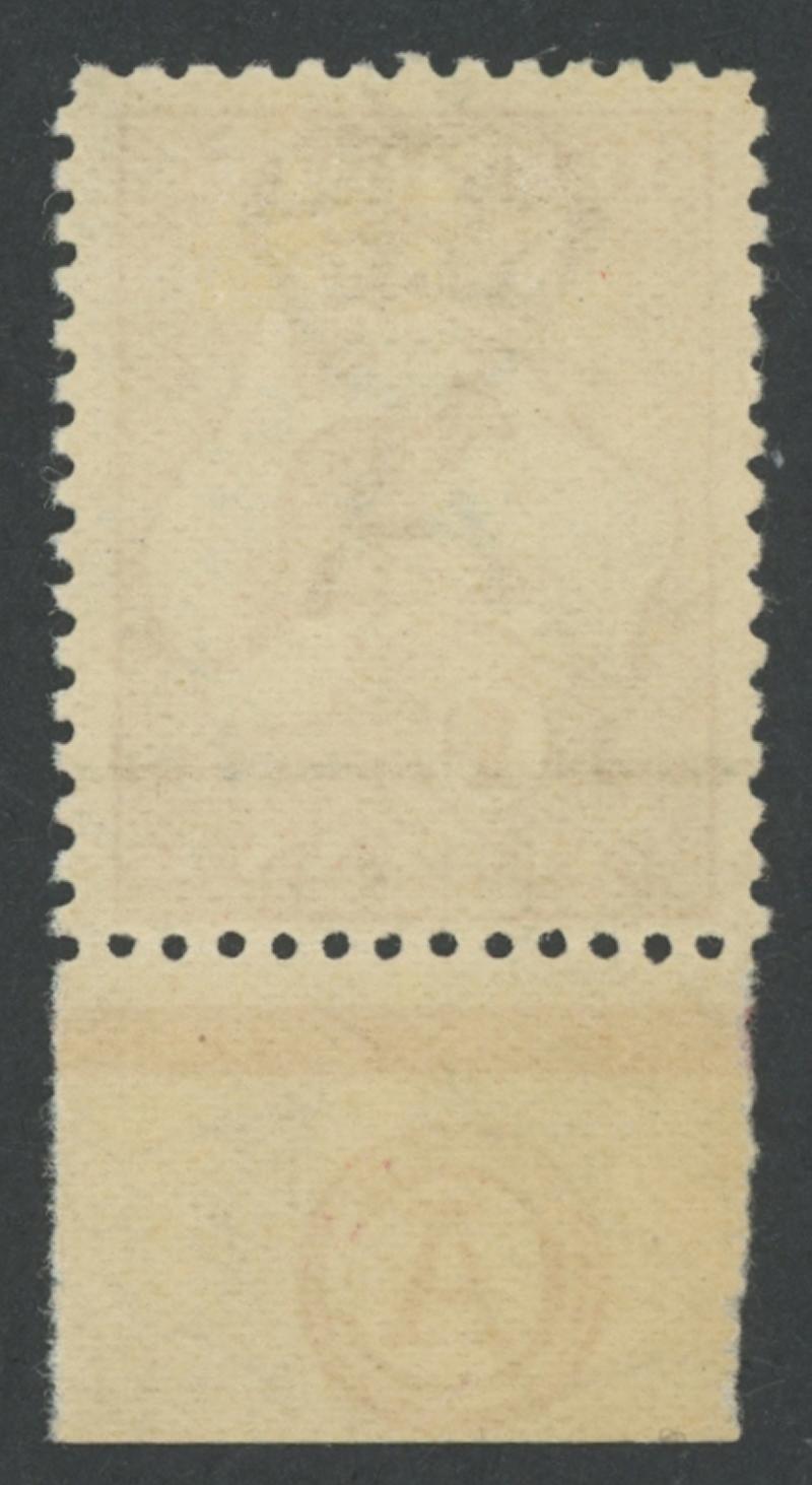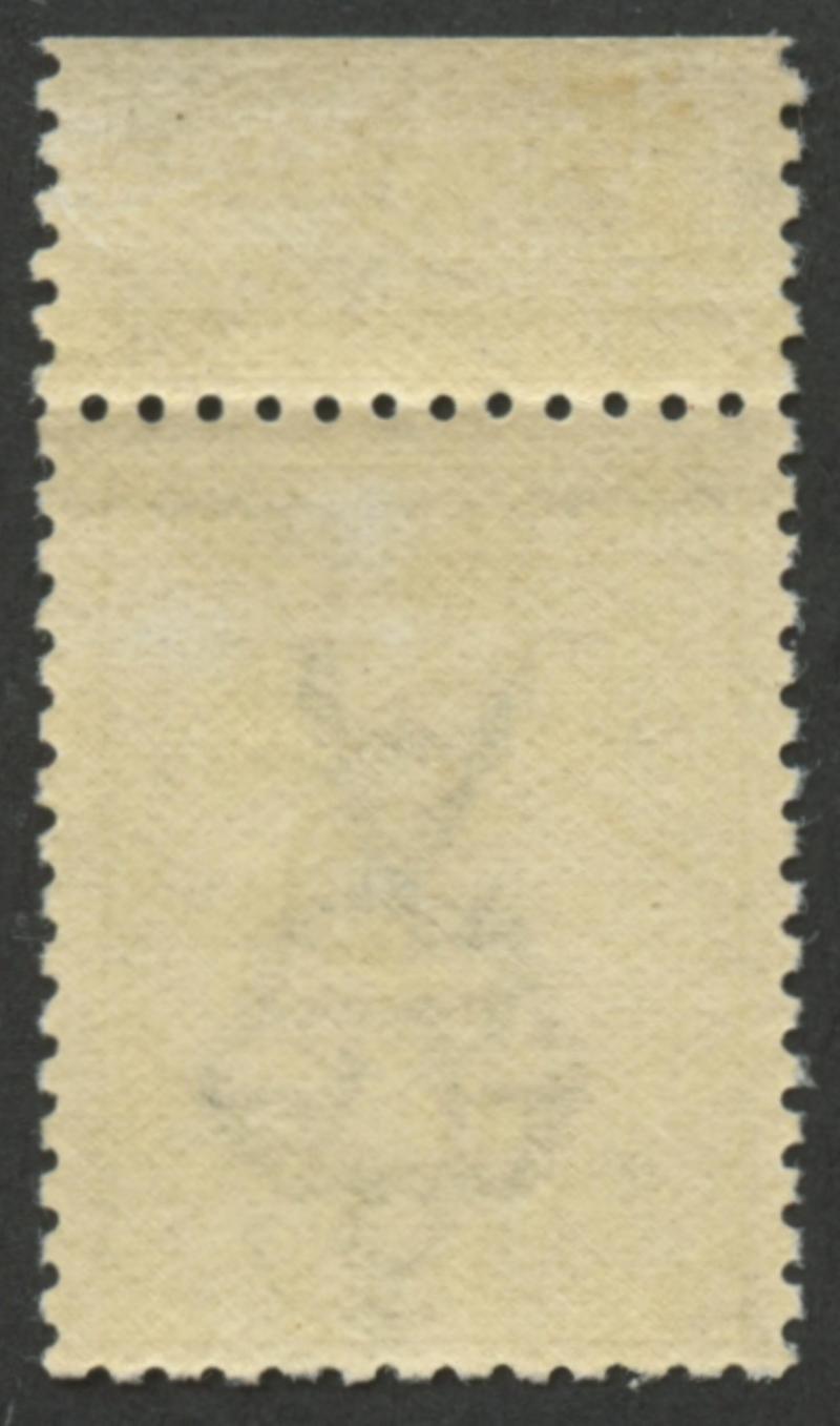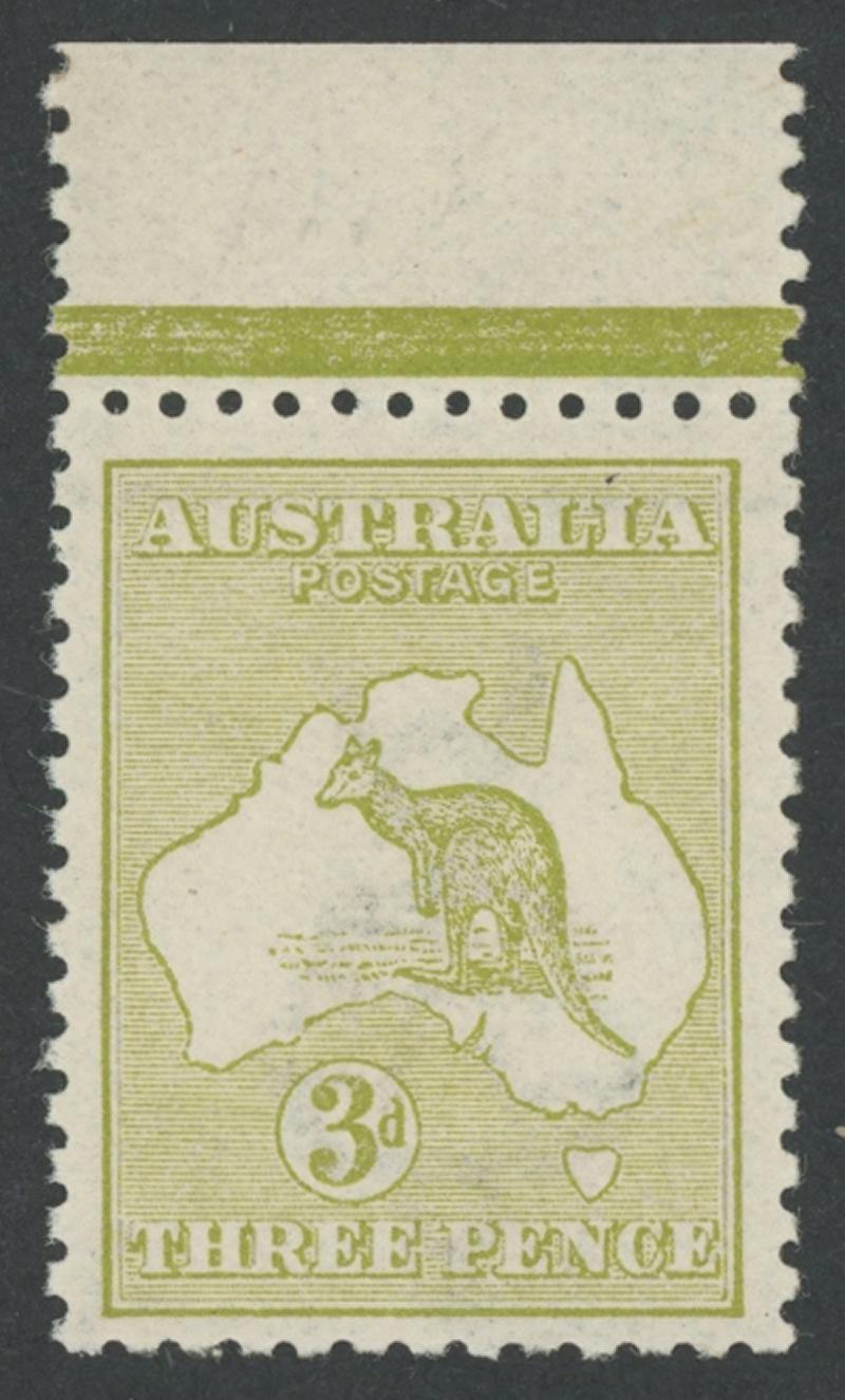 3d olive Die I SG 37cw Watermark Inverted upper margin single ACSC 12Aa, the stamp is unmounted and the upper margin has a hinge