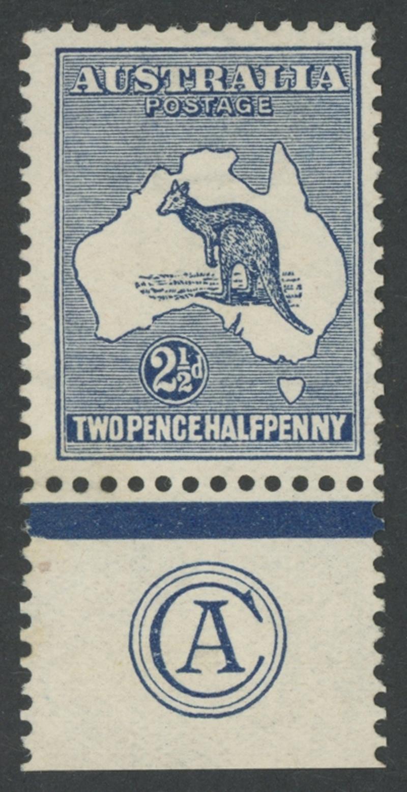 2½d indigo Die II SG 4 Plate 2 'CA' Monogram single ACSC 92(2)zd Cat $1750. Ex Barry Gribble: acquired for $977 at our auction of