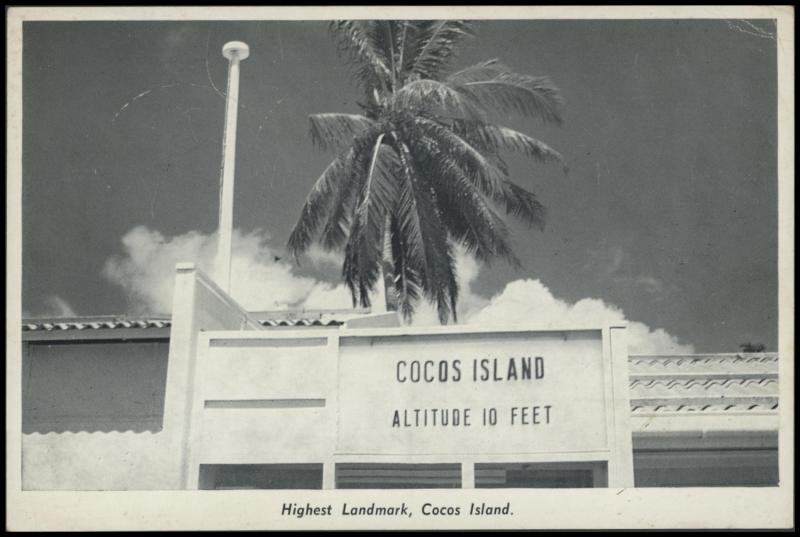 1964 (May 1) social usage of local PPC ('Highest Landmark, Cocos Island' with Pictorials 3d Copra x2 + 8d Map tied by #3 cds. The