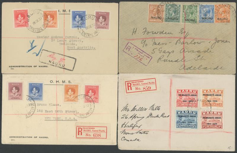 POSTAL HISTORY: Registered covers including 1917 with Overprints on GB 2d to 5d, 1948 OHMS to GB with Freighters ½d Perf 14 4d &