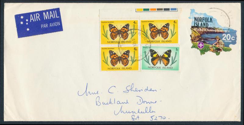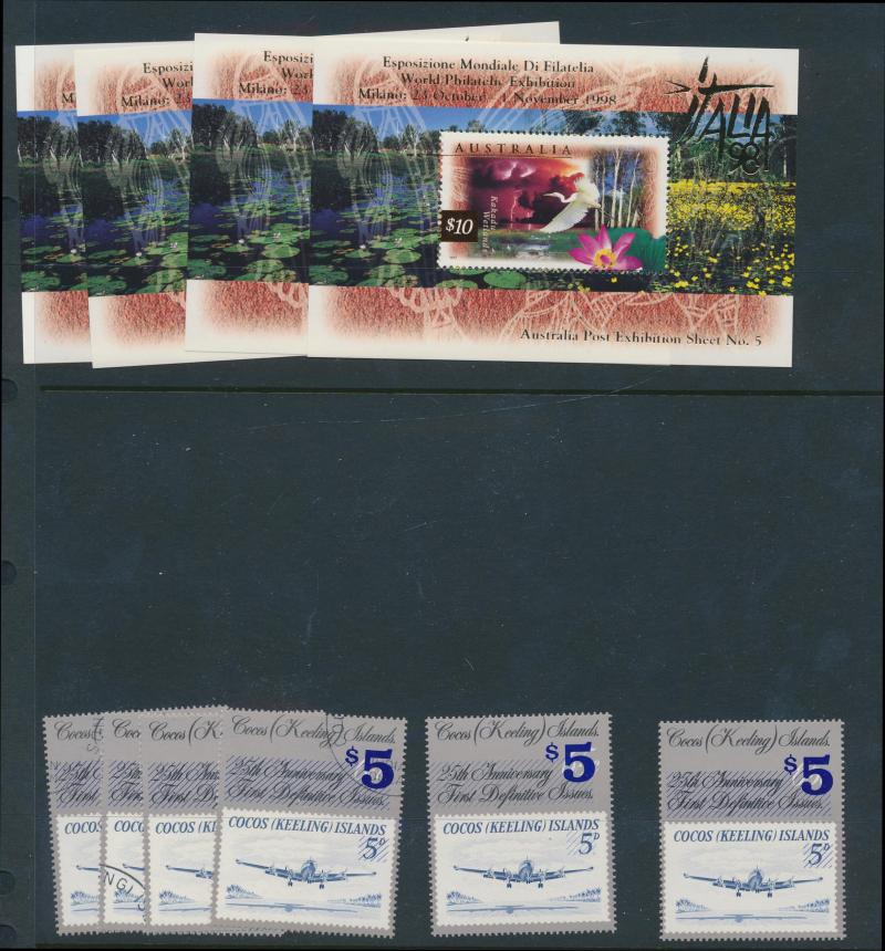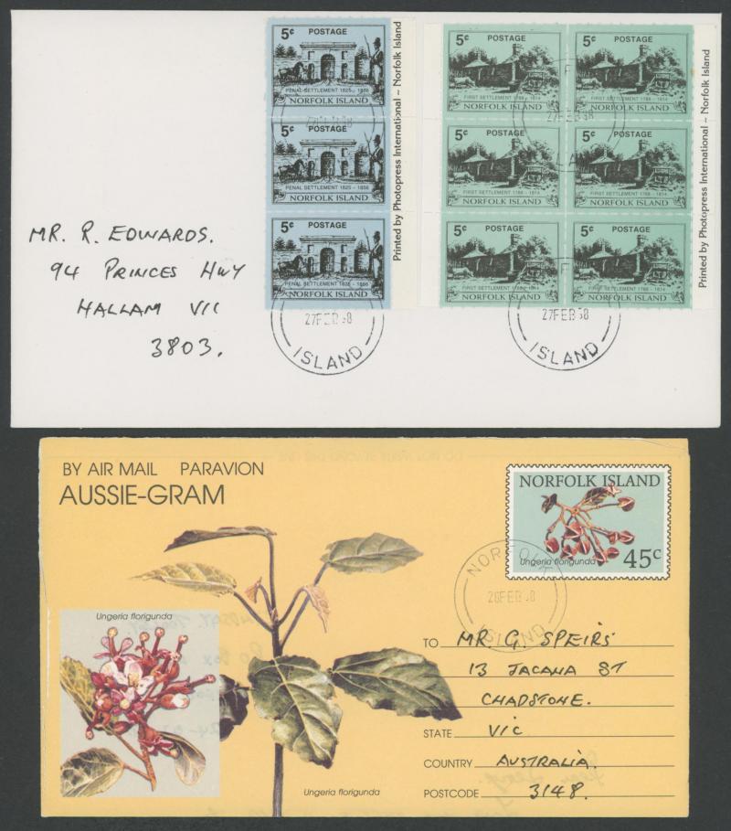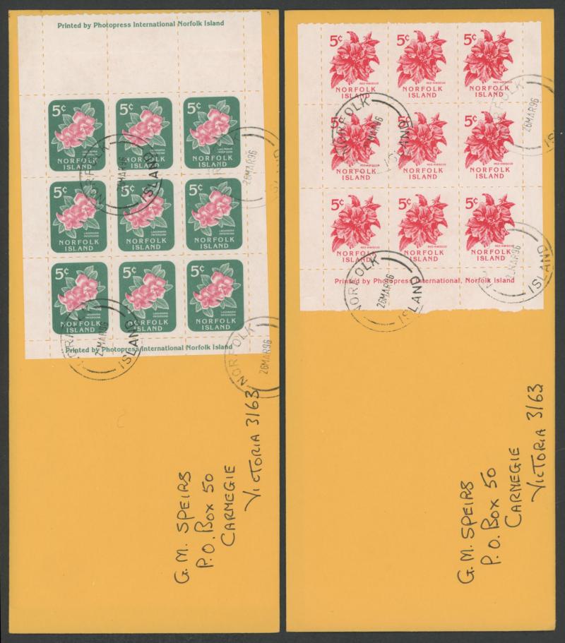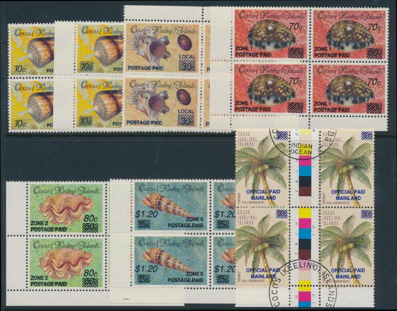 Cocos Islands Emergency Surcharges blocks of 4 ** (the Official with printed 'postmarks'), Norfolk Island covers including three