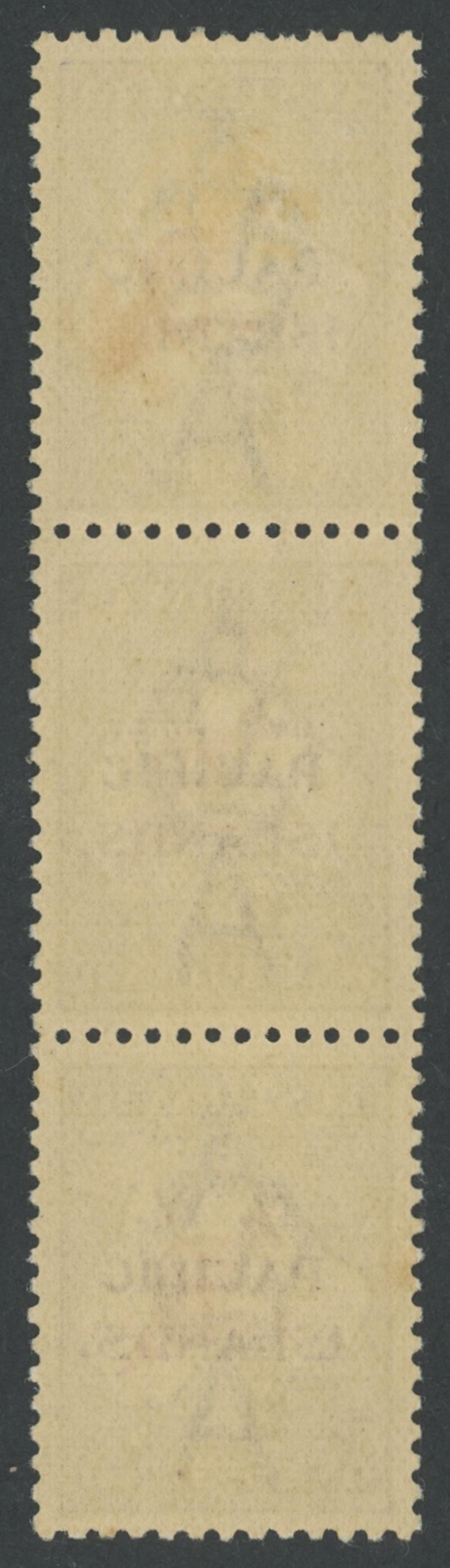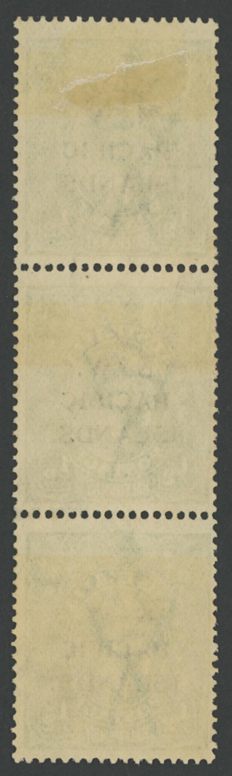 unit has light gum aging, the b unit shows the faintest evidence of having been mounted & the c unit is unmounted, Cat £1400+ for mounted. [Barry Gribble's very fine strip with the b & c units unmounted sold for $3029] (Image1) (Image2)