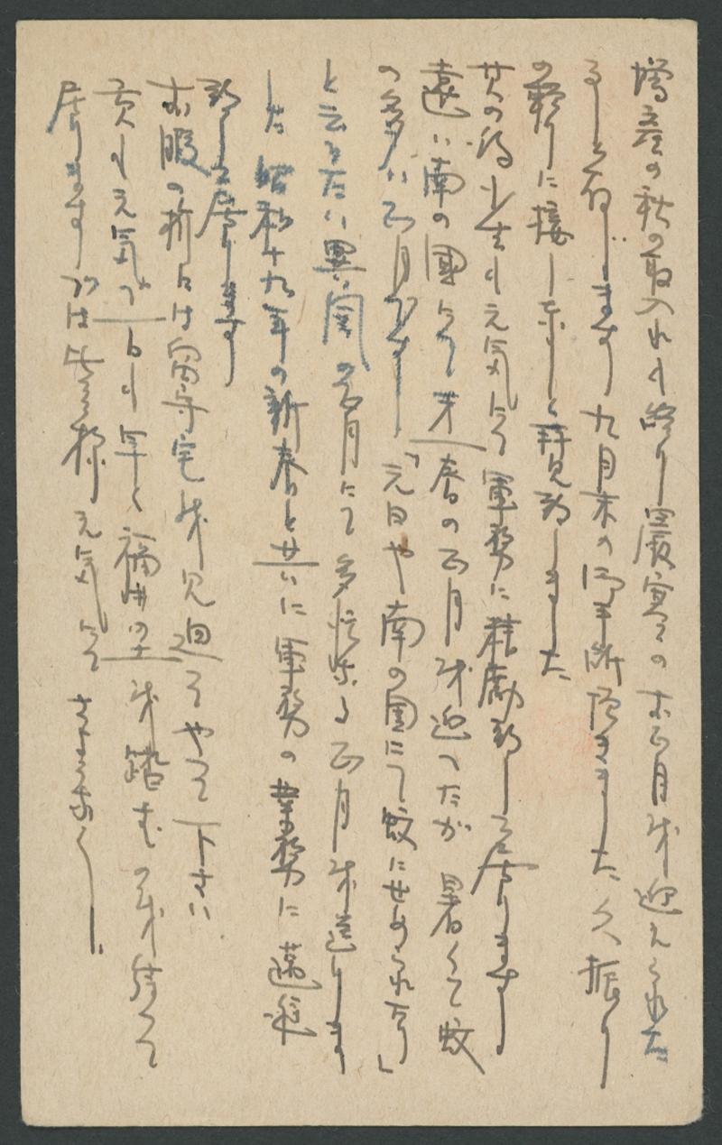 with censor's han in scarlet, full message but without transcript. Sender identified as Mitsugu Igarashi. Possibly from Nauru? (Image1)