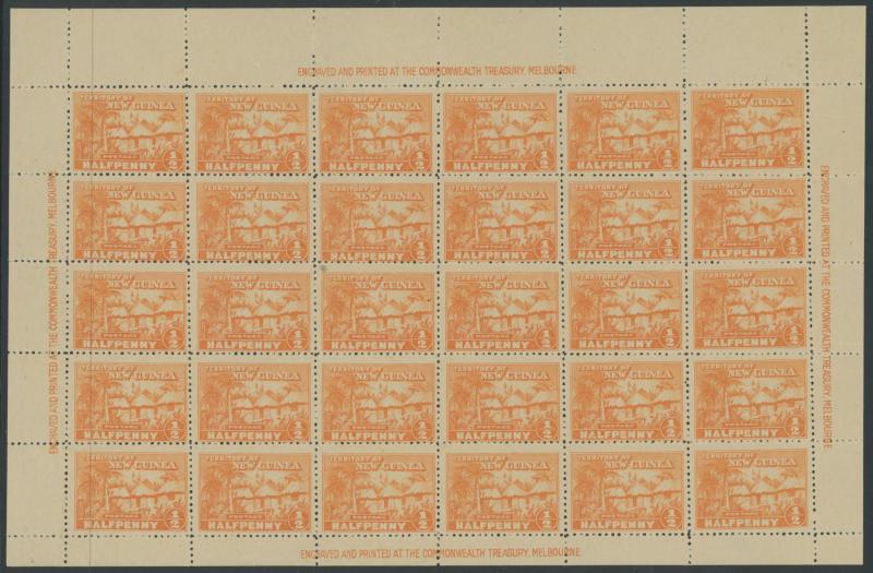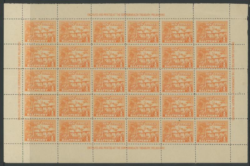 1925-27 Native Huts ½d x2, 1½d, 2d, 3d and 6d bistre SG 125 126a 127 128 & 130 complete sheets of 30 (6x5) with full imprints,