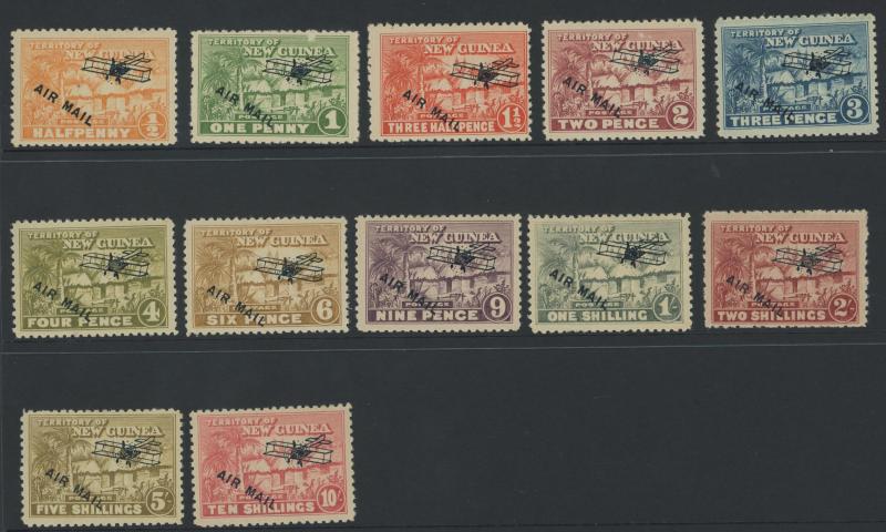 1939 Bulolo Airs ½d to £1 set SG 212-225, most are well-centred, full unmounted gum with characteristic light to moderate