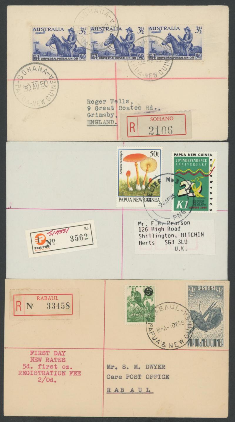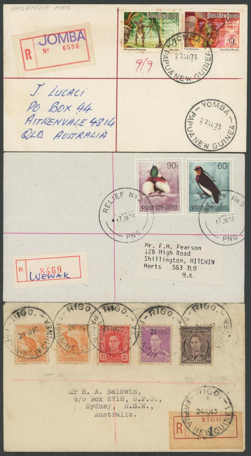 POSTAL HISTORY: Collection of registered covers mostly from Papuan Philatelic Society service including 'BAININGS' on Australian