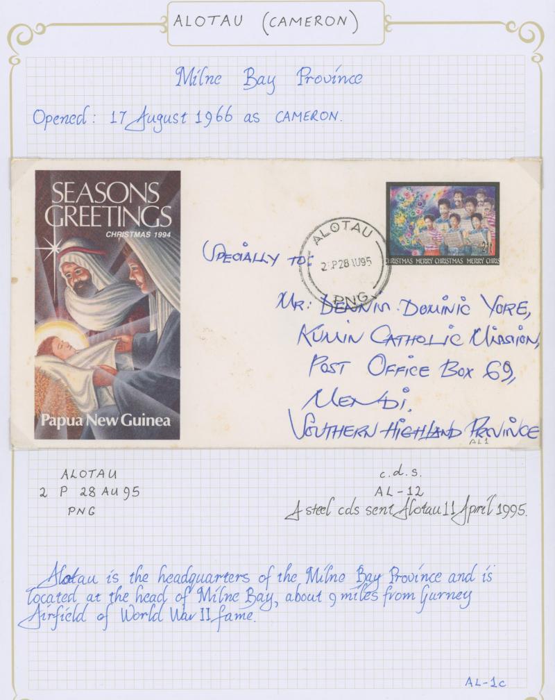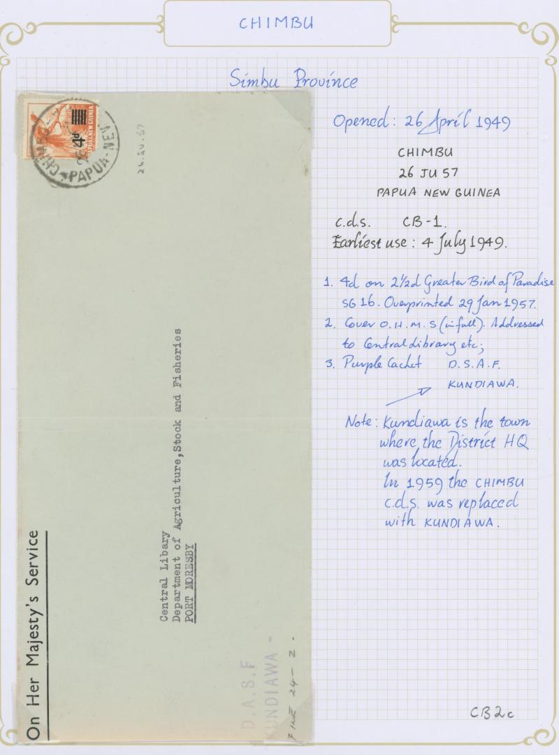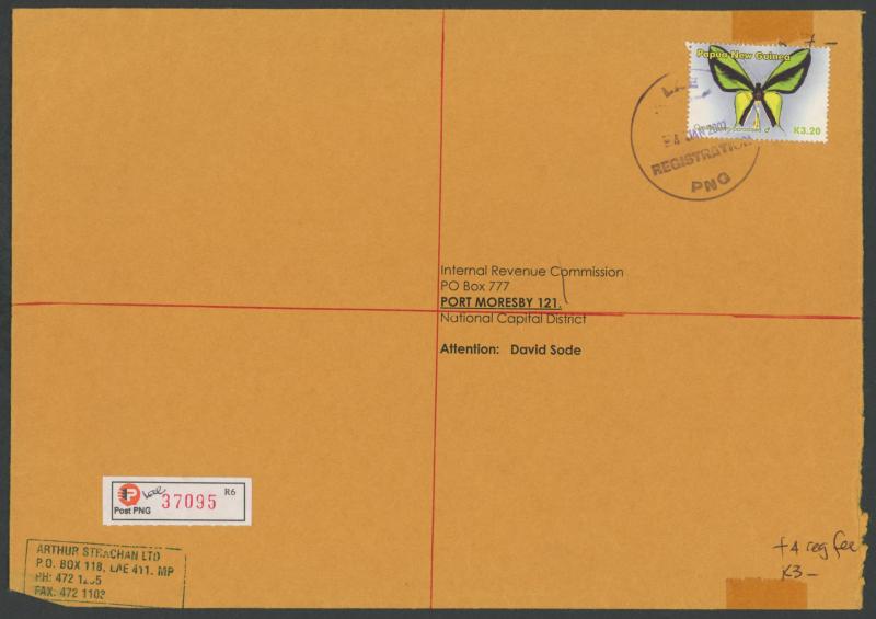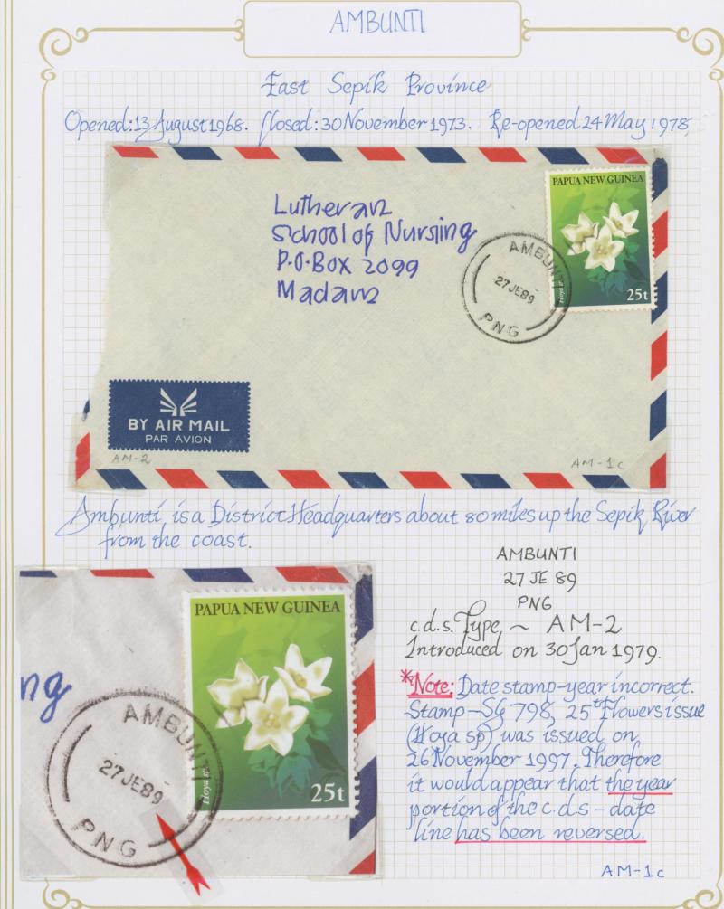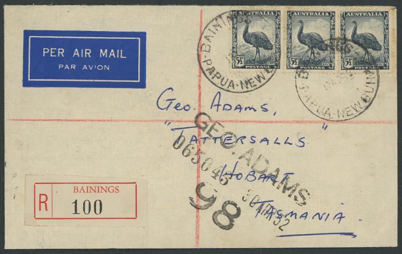 'BAININGS/PAPUA-NEW GUINEA' cds (another strike on the reverse), red & black R label, Melbourne transit & Hobart arrival backstamps. PO 1.3.1951; closed 1.3.1953. Sold at our auction of 4.10.2017 for $408. (Image1) (Image2)