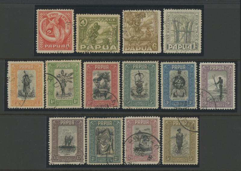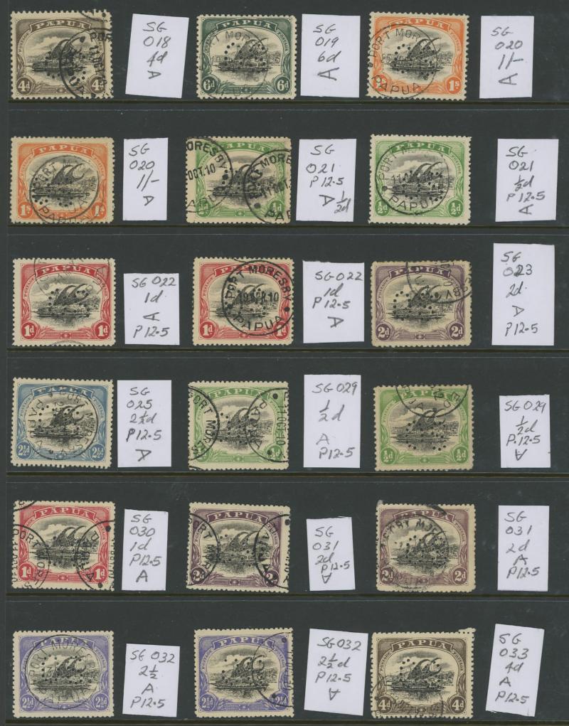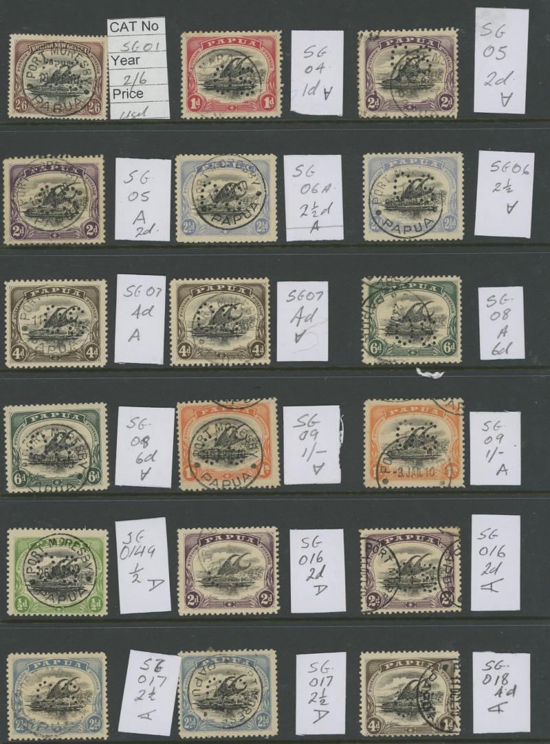 OFFICIAL STAMPS: Range on three hagners with BNG 2/6d, Small 'PAPUA' to 1/- x4, Large 'PAPUA' to 2/6d x2, and Monocolours to 1/-,
