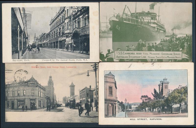 Visit x2 and Jolleys from South Australia & Tasmania, advertising shipping card for Howard Smith Co Ltd, etc, condition rather mixed including soiling & stamps removed but all are presentable to fine.