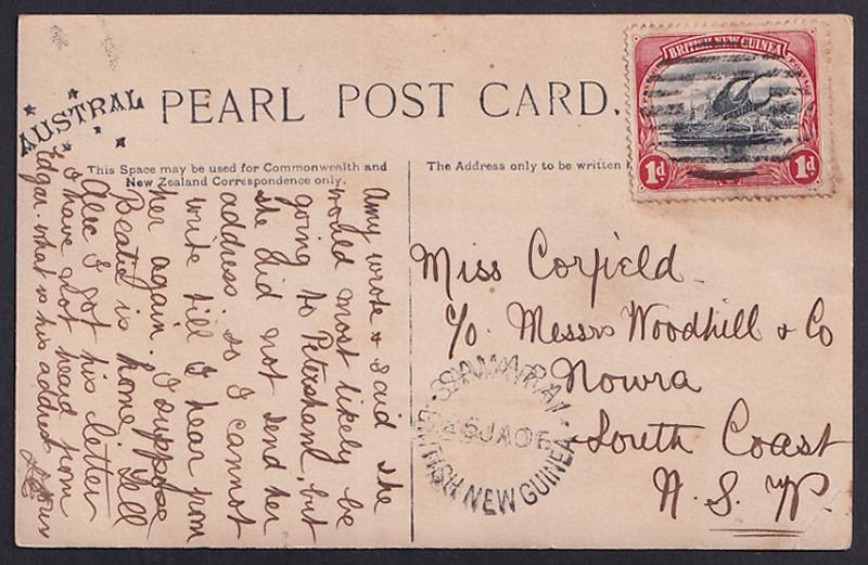 steamer, which would explain the almost three weeks that elapsed between writing and posting. This may well be the earliest known item of mail from the Trobriand Islands. There was no Post Office on the islands until Losuia opened in 1926. (Image1) (Image2)