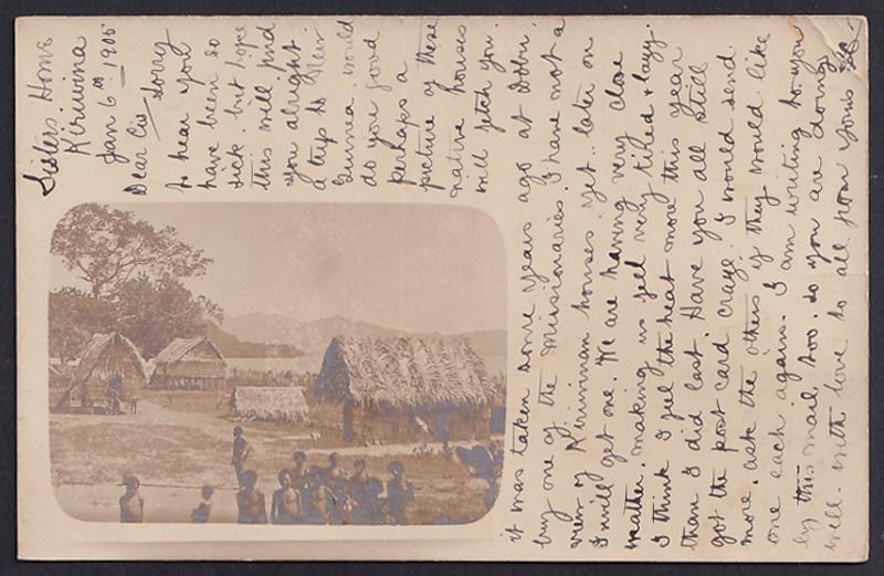 POSTAL HISTORY: 1905 (Jan 6) usage of 'Austral Pearl' real photo PPC of Native Villagers & Huts and lengthy message headed