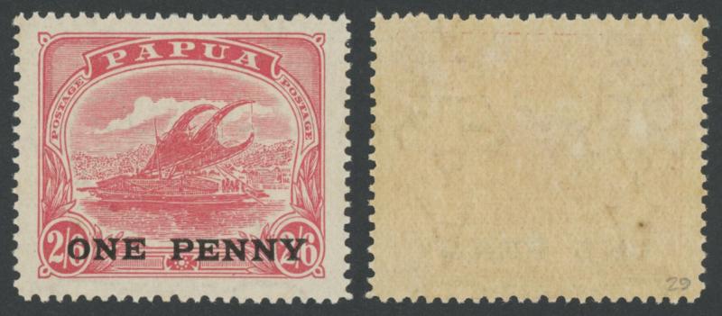 Carmine Overprint suggests that the quantity overprinted in this colour was greater than the 10 sheets (400 stamps) indicated by Rosenblum and repeated by Croaker. This actually makes it more deserving of being listed by Gibbons]. Rev Roger Lee's