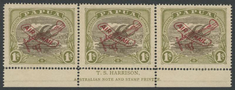 1930 Airmails 'Aeroplane' Overprints Harrison Printing 1/- sepia & deep olive as SG 117 but with the Overprint in Deep Carmine TS