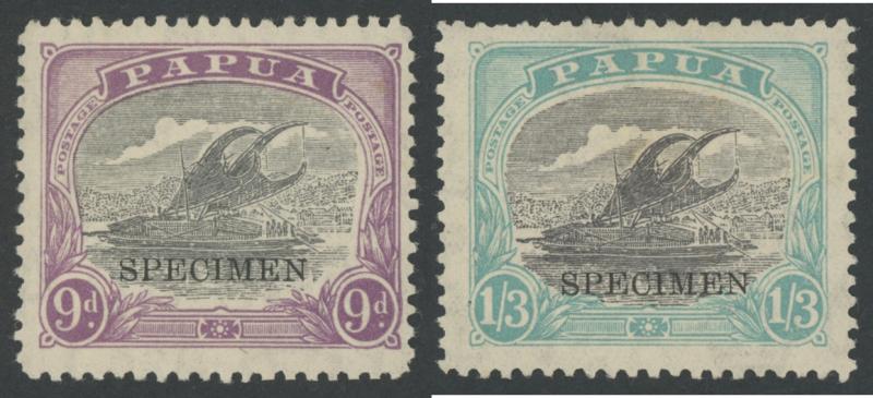 1932 Bi-Colours CofA Wmk 9d & 1/3d with 'SPECIMEN' overprints SG 127s & 128s, the 9d unmounted, the 1/3d with a small patch of gum