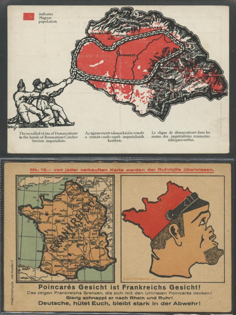 POLITICAL PROPAGANDA: 'Redrawing the Map of Europe' propaganda cards for Czechoslovakia x3 (one a bit aged), Hungary x2,