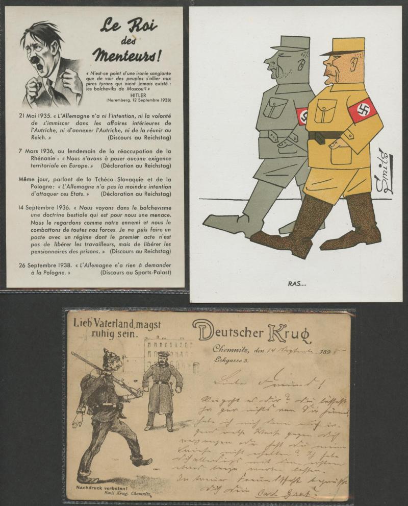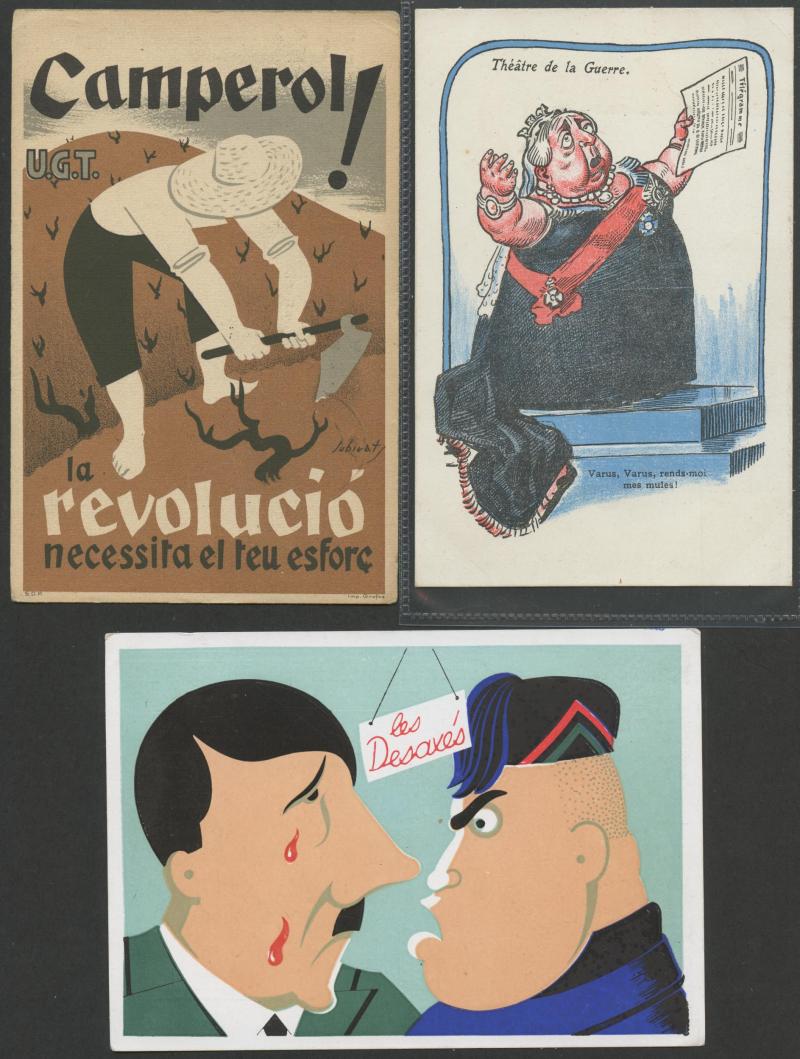 'Brutalité-Bestialité-Egalité', Spanish Civil War, anti-Nazi x3, etc, condition variable but most are fine to very fine. A very desirable group. View the online images to fully appreciate these cards.