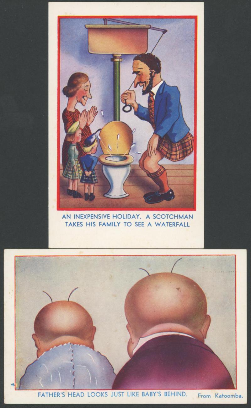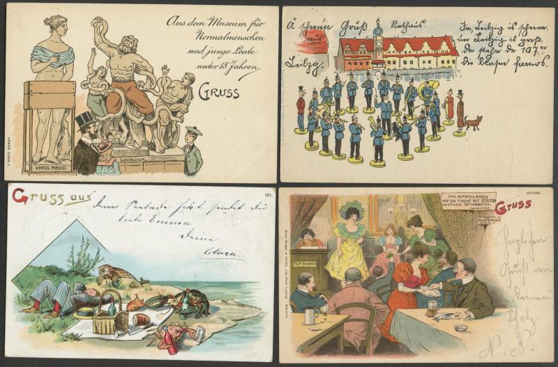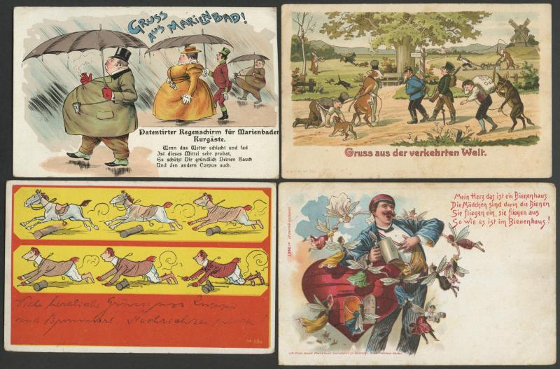 HUMOUR: Superior group of Undivided Backs from Germany, Britain, Belgium & USA, some blemishes but most are fine to very fine. All