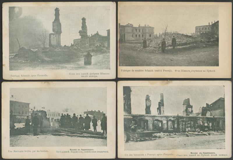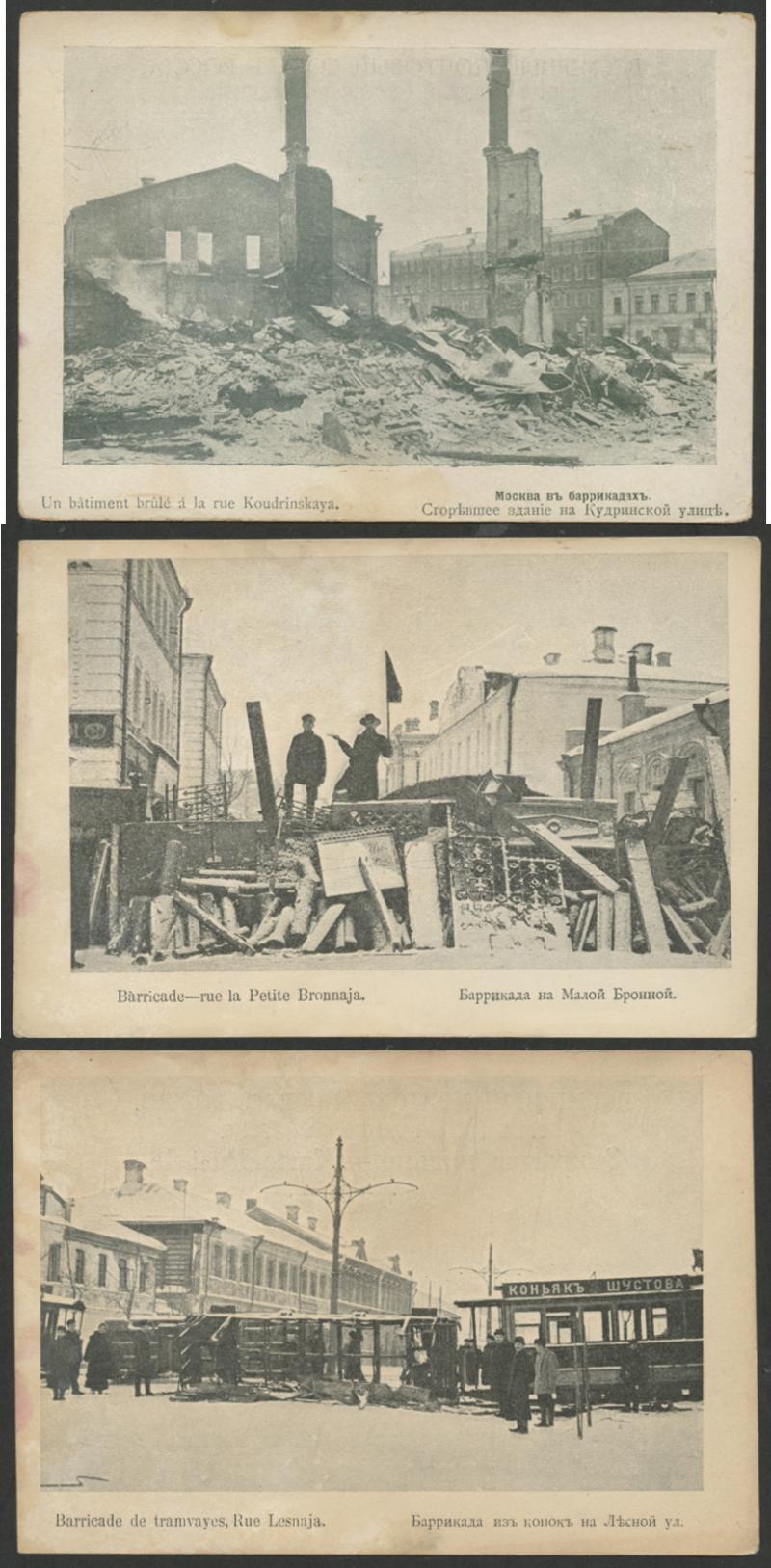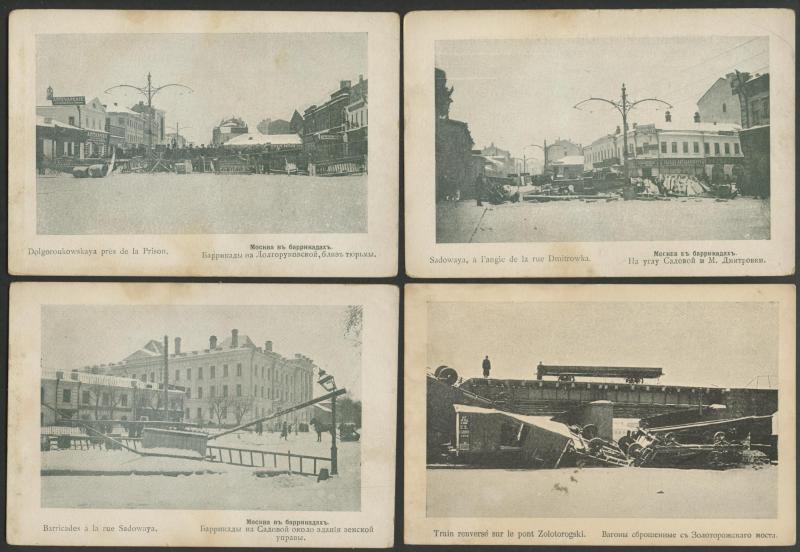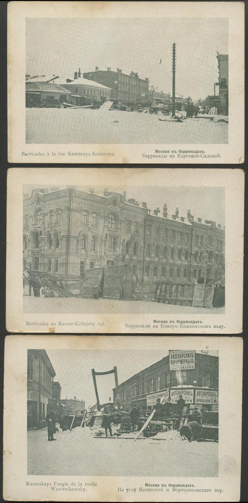 RUSSIA: 1906 colotype (?) cards of the 1905 Revolution with several views of the barricades a couple with rebels standing defiantly