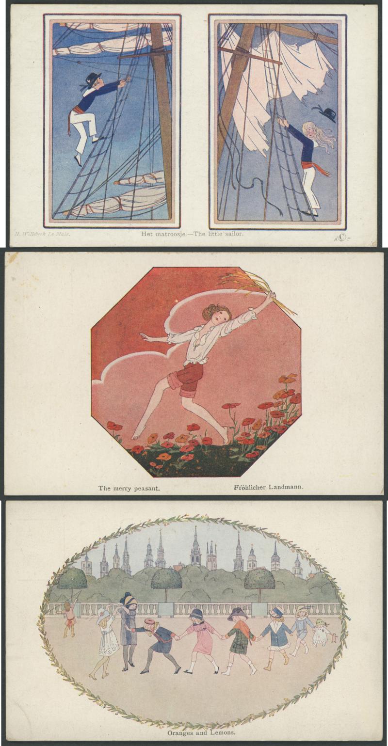 & whimsy throughout, some Art Nouveau and Art Deco design elements, mostly with English or Dutch captions, others in English & Dutch, limited duplication, some minor soiling on the reverse otherwise fine to very fine.