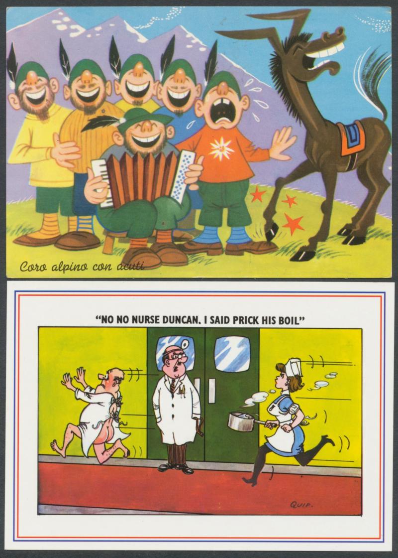 HUMOUR: Two large albums of mostly British double entendre cards including some earlies & a few European types, mostly unused &