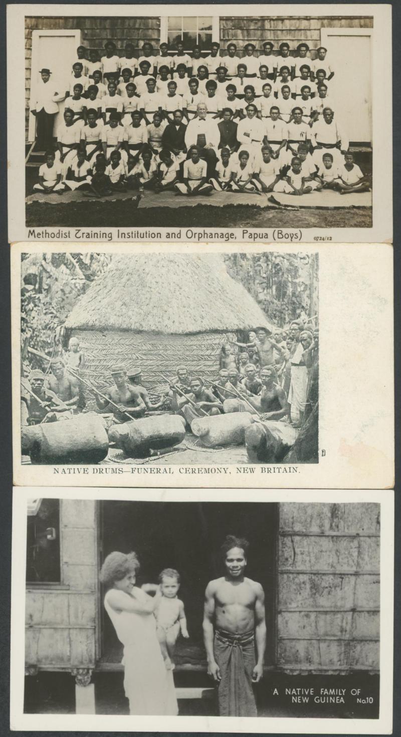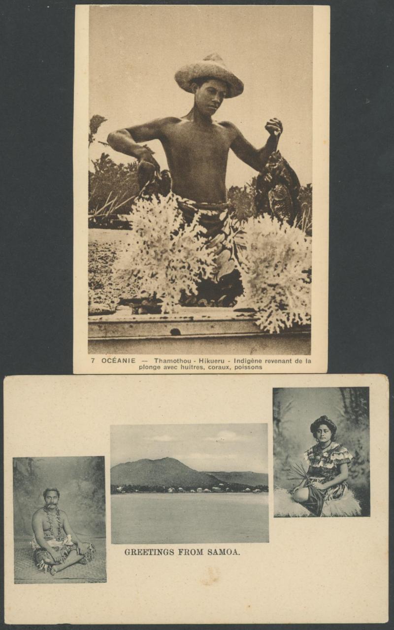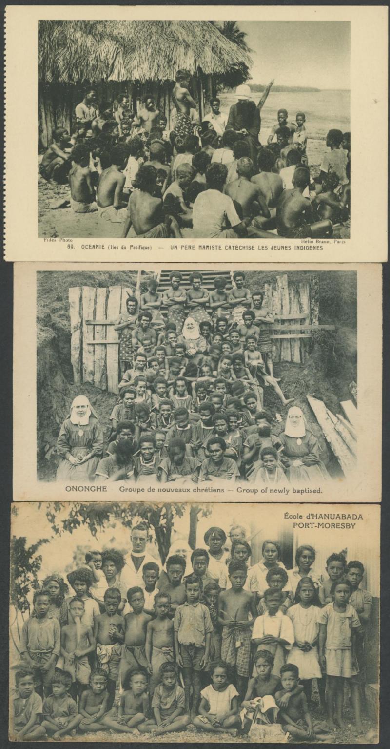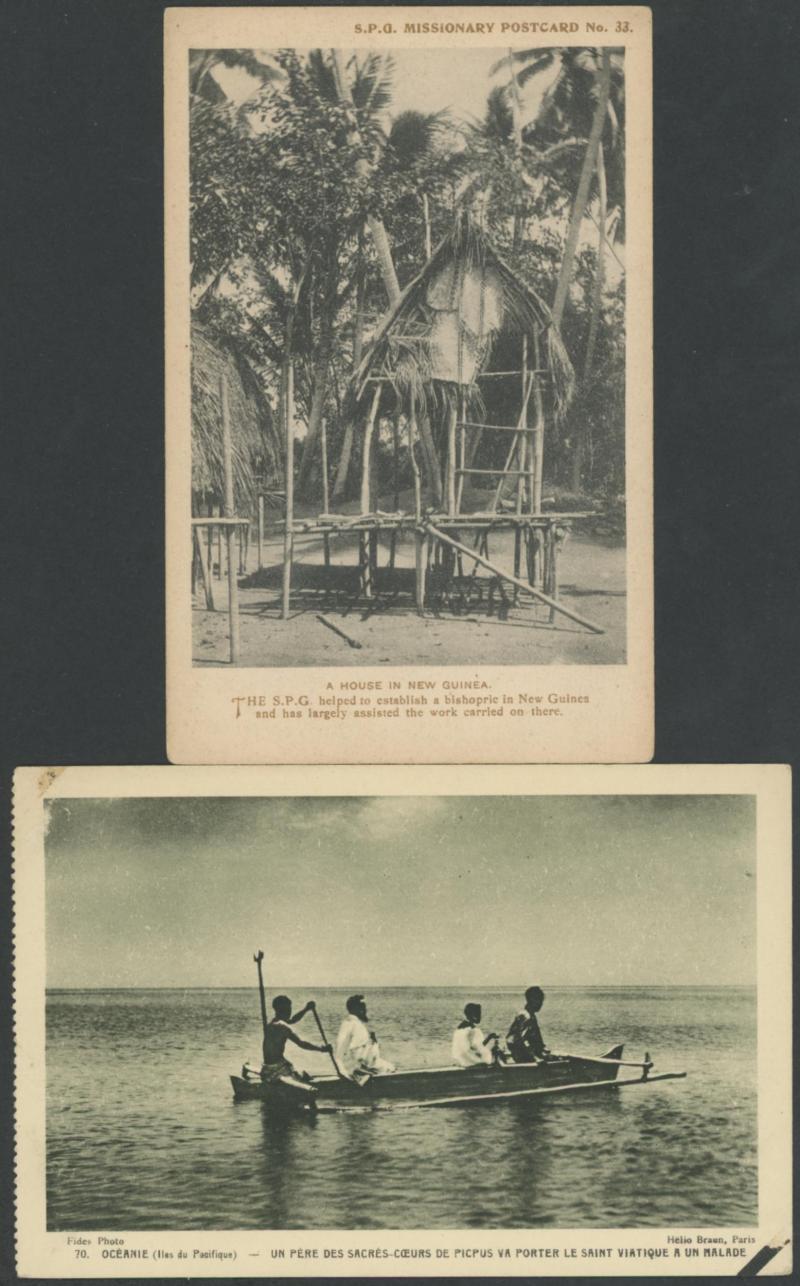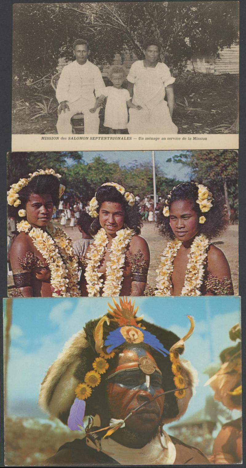 Papua mainly French missionary issues, Solomons, New Caledonia, New Hebrides, Fiji, Samoa, etc, numerous indigenous subjects including portraits, ceremonies & artefacts, condition variable but generally fine to very fine (140 approx); plus a similar