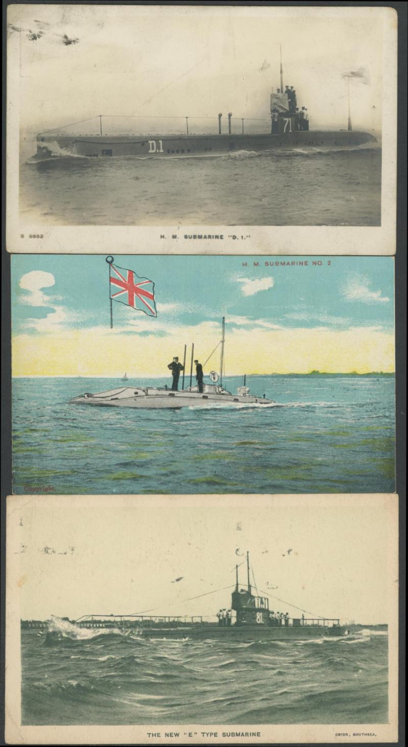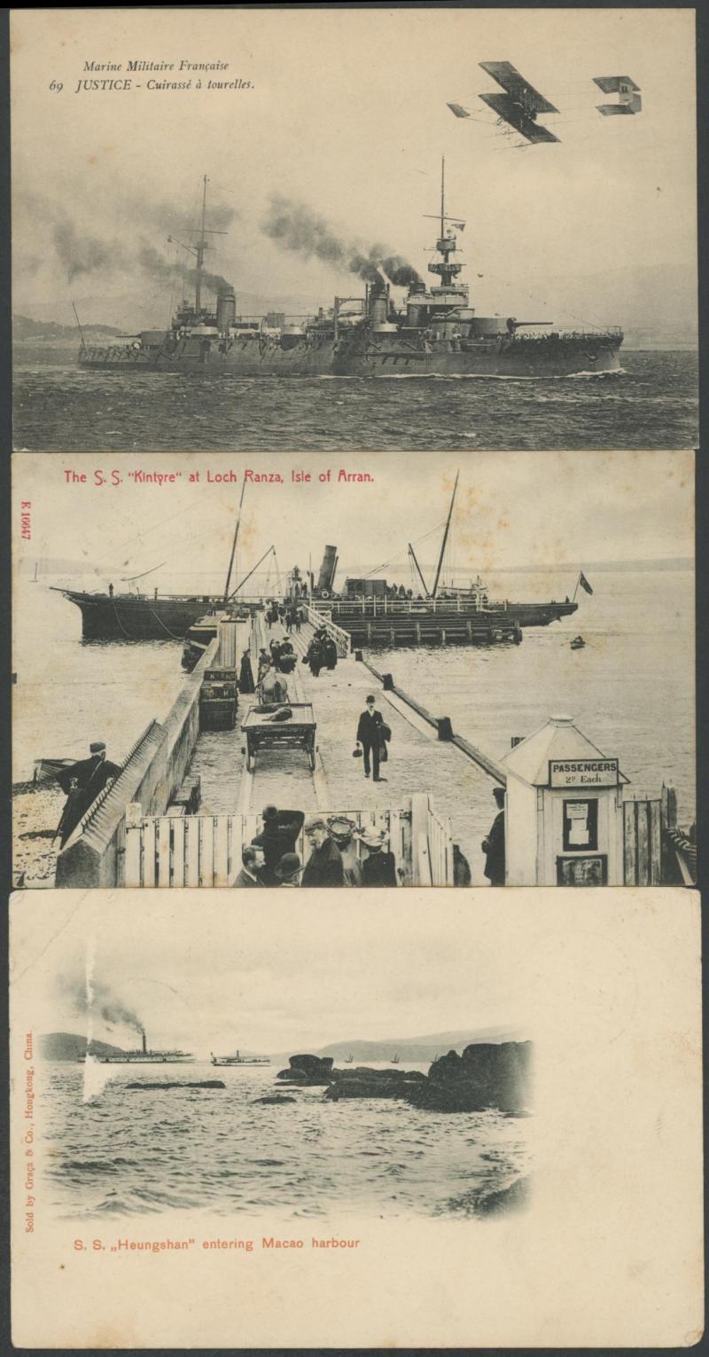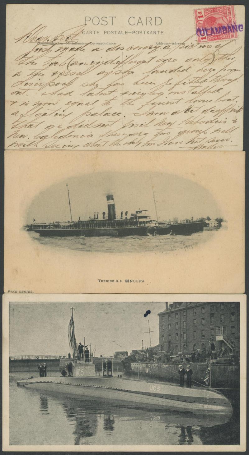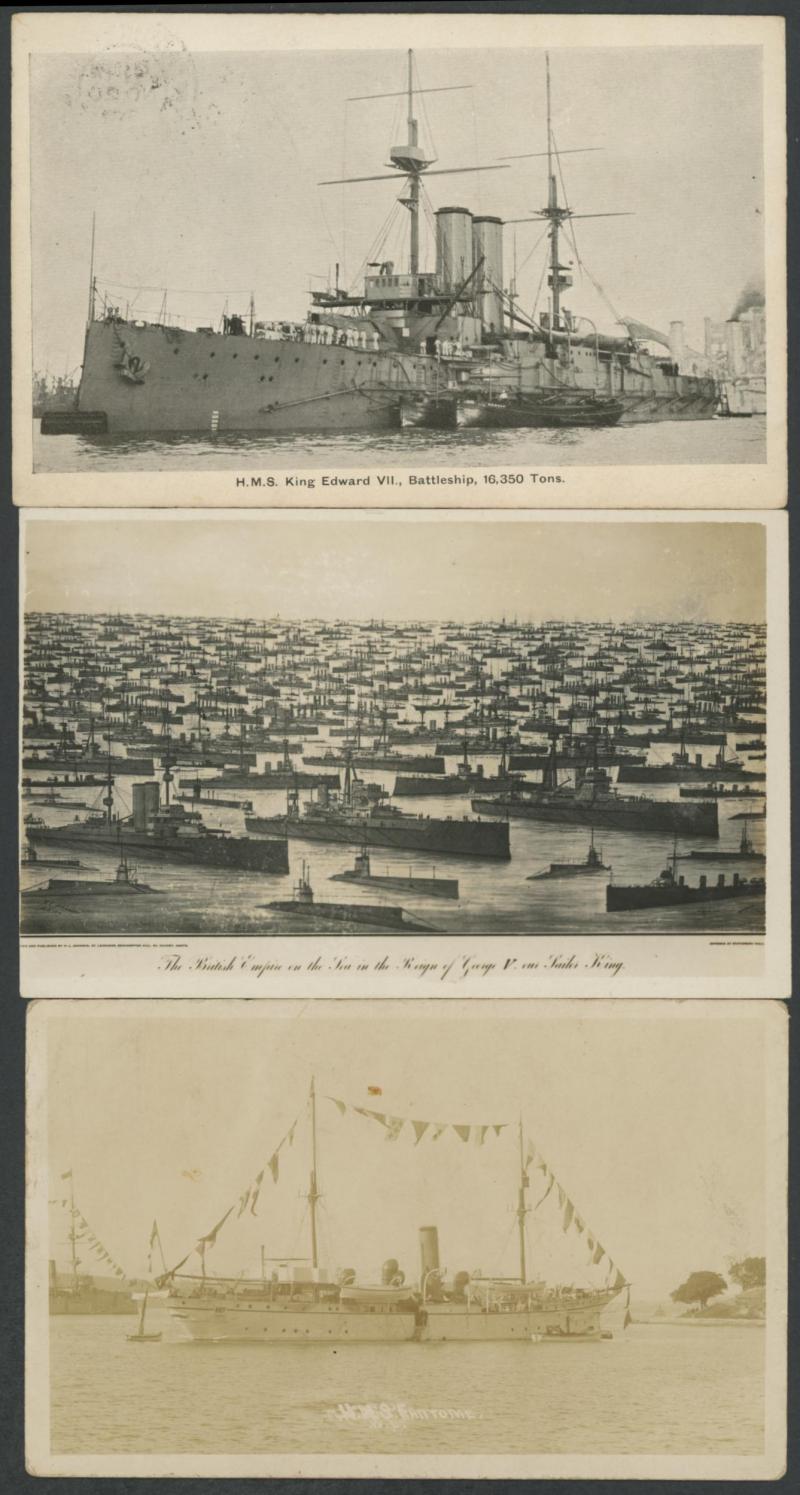 naval ratings & officers, some Australia including 1908 Visit of the American Fleet x2, strength in British cards, many from other countries including of a Portuguese submarine, etc, one unaddressed card with stamp on the message-side tied by