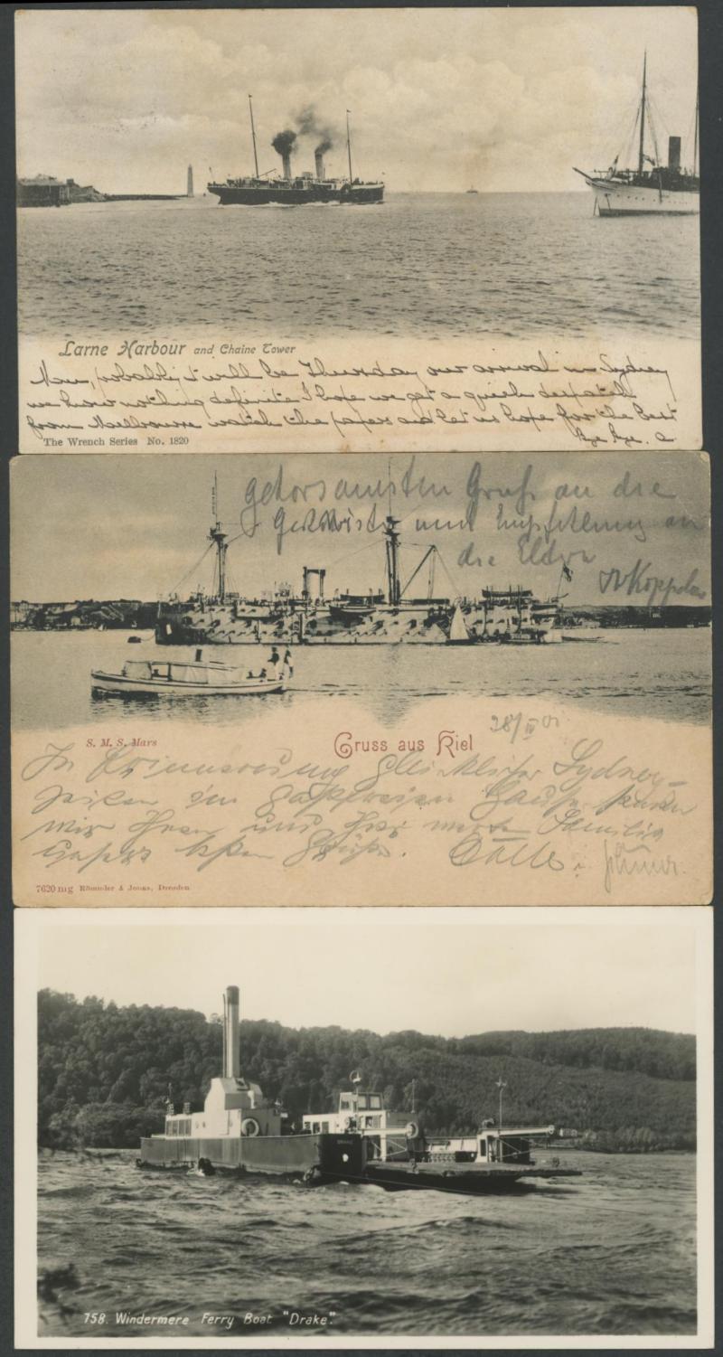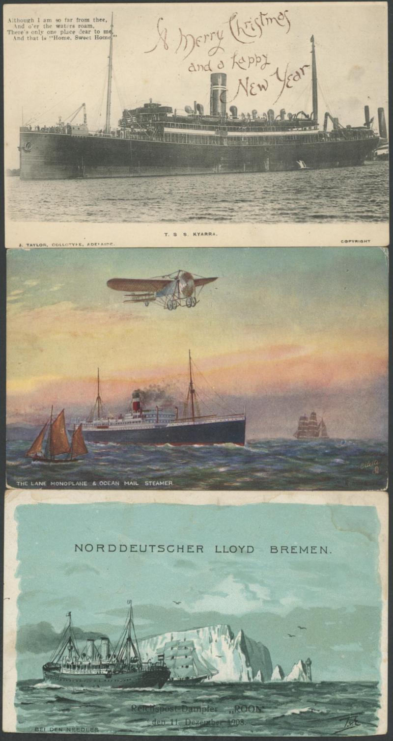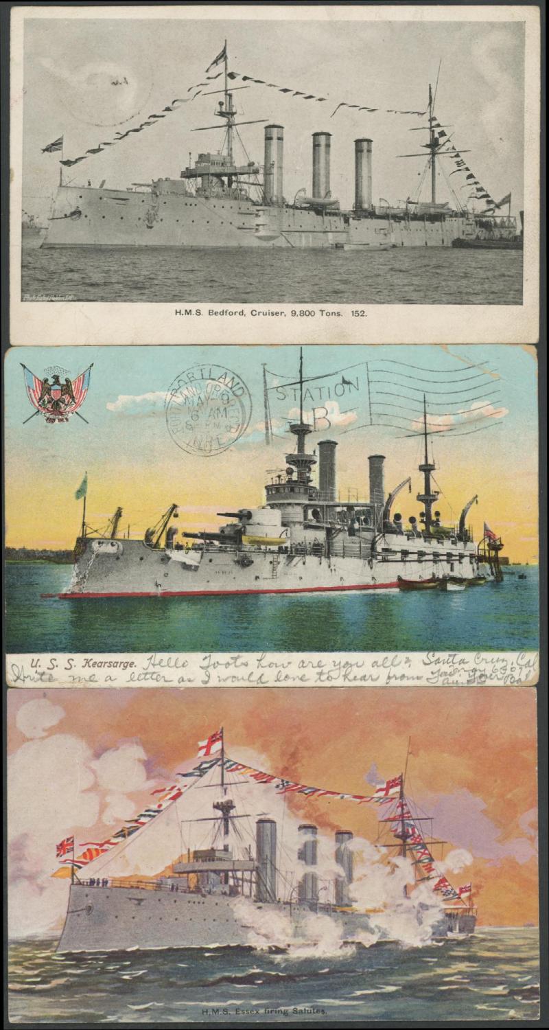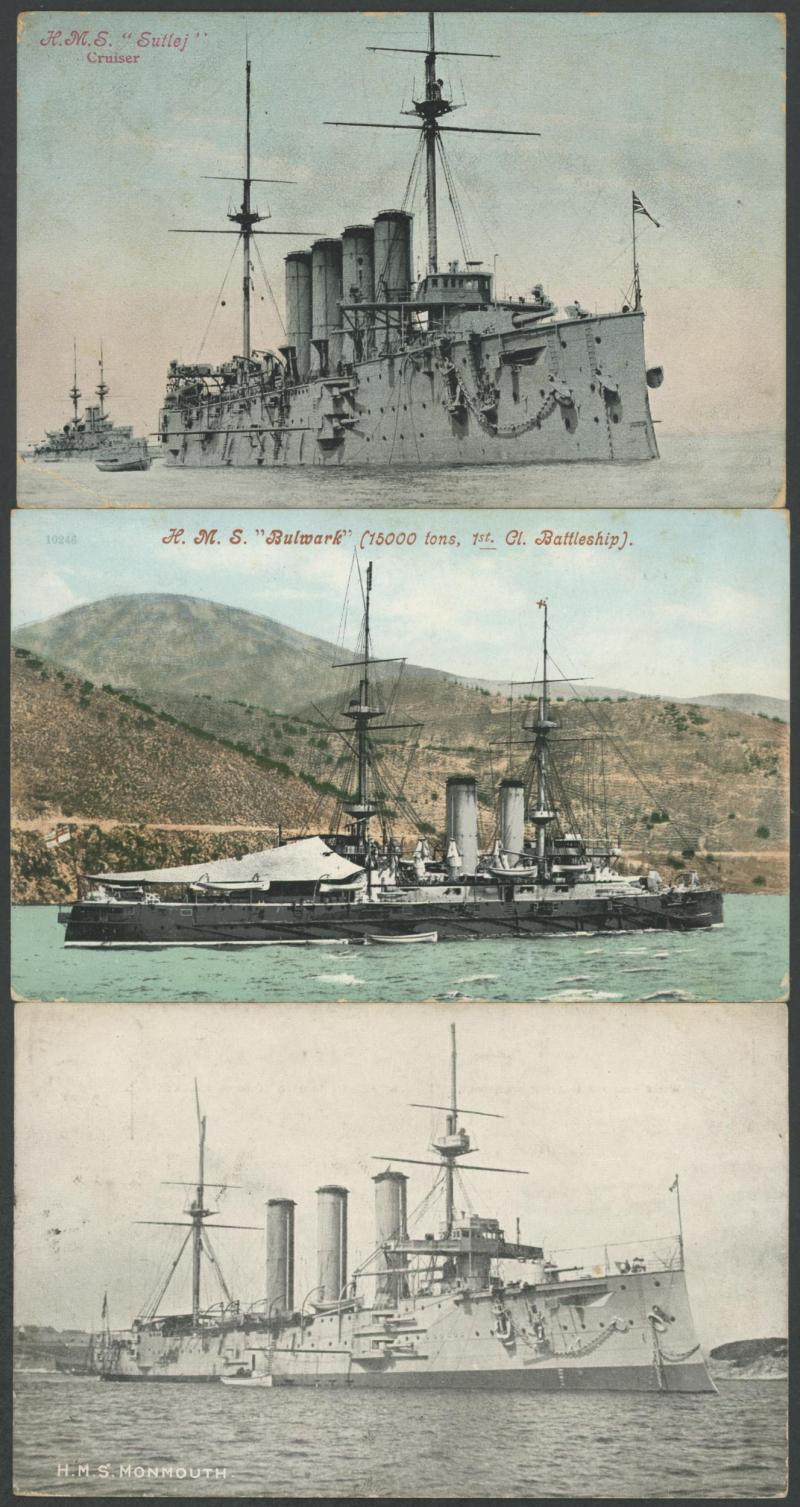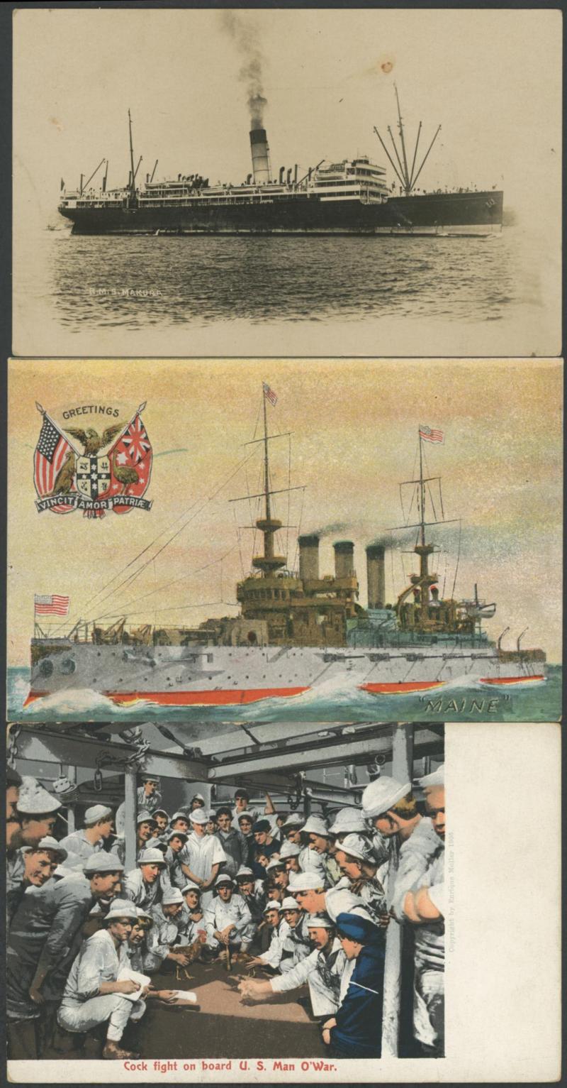 naval ratings & officers, some Australia including 1908 Visit of the American Fleet x2, strength in British cards, many from other countries including of a Portuguese submarine, etc, one unaddressed card with stamp on the message-side tied by