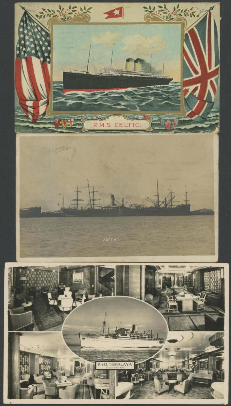 soiled on the backs), Tuck 'Celebrated Poster' series for Ogden's Guinea Gold (very fine) and photo-mechanical card of a lifeboat crammed with partygoers & 'Smoke/Grapevine/Cigarettes' on the sail (very fine used).