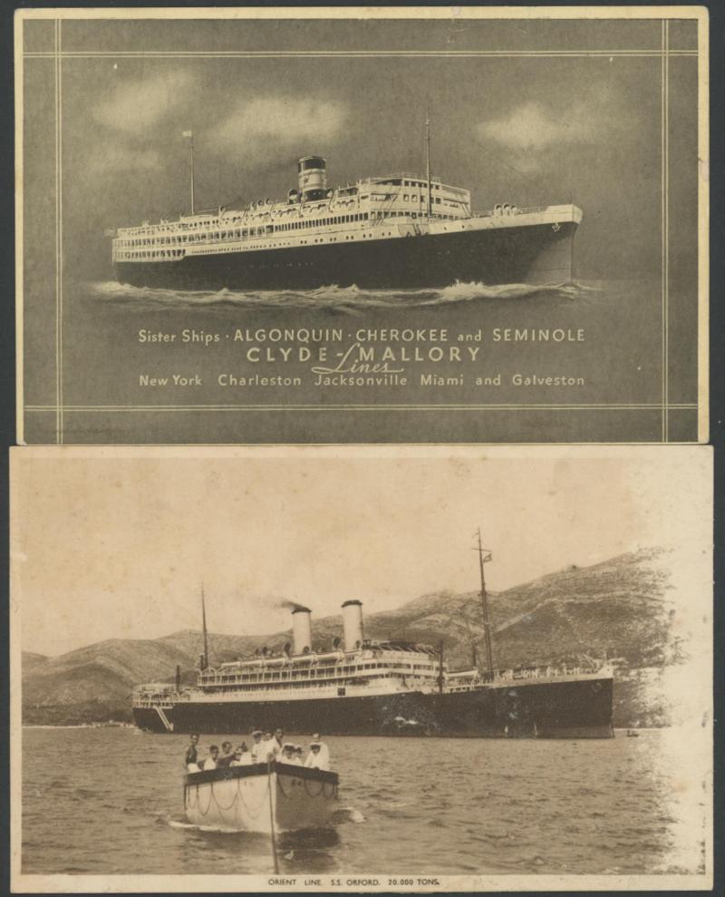 SHIPPING: Collection in two albums with coastal vessels, ocean-going liners, naval ships including submarines, infrastructure,