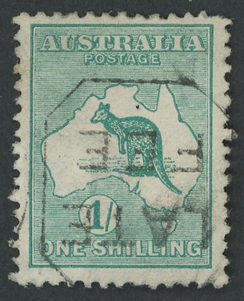 1/- blue-green with the Watermark Inverted ACSC 30a (SG 11w), well-centred, postally used with part 'LATE/FEE - [STOCK