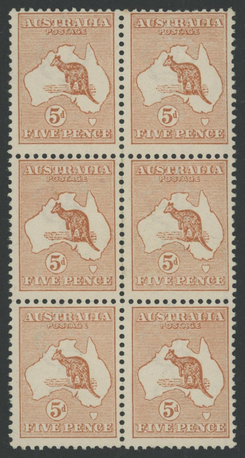 5d chestnut ACSC 16 (SG 8) block of 6 (2x3), two tiny very light aging marks on the gum, unmounted, Cat $4000+ for singles (£720+