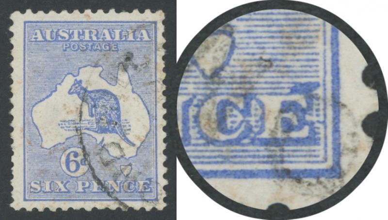 6d ultramarine SG 9 with Defective Second 'E' of 'PENCE' [Pos 1L34] ACSC 17(1)e, CTO with 'MELBOURNE/DE 3/13' cds, no gum, Cat