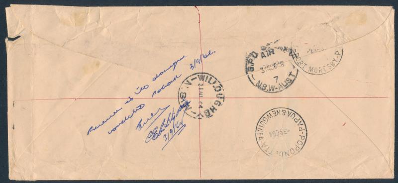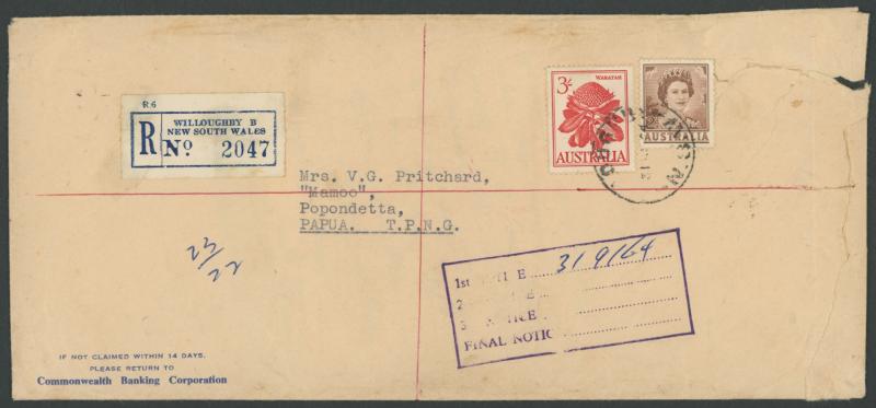 1964 (Aug 31) Commonwealth Bank envelope registered from suburban Sydney to Papua New Guinea, the reverse with Port Moresby cds of