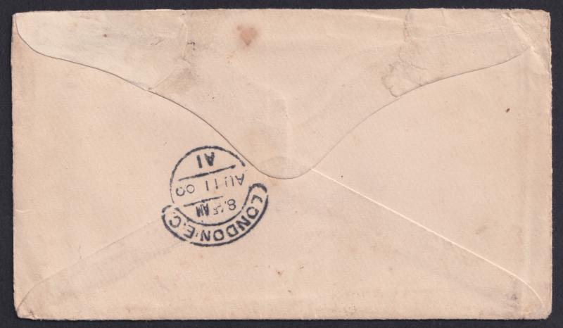 Mails/looted by the Boers on June 8' cachet, redirected to England with 'LONDON EC/AU1100/ A1 ' arrival backstamp, light overall soiling, with the enclosed note on Pirie Chambers letterhed signed "WJ Belt". Very attractive. Mail from the South