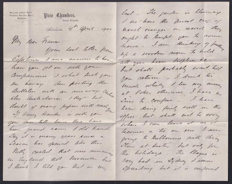 Wiiliam James Belt was an Adelaide solicitor. Francis Walter Belt was his brother & law partner. He was also a member of the 1894 WA Horn Scientific Expedition into Central Australia. During WWI he was commissioned into the Royal Navy, serving in