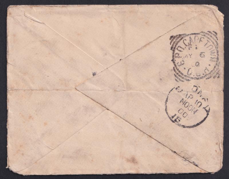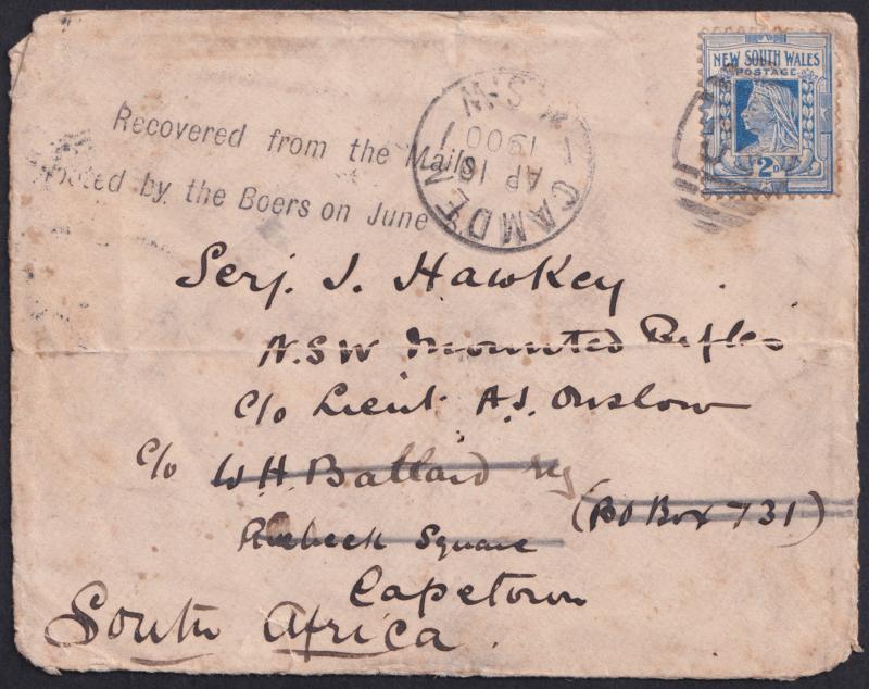 1900 New South Wales cover to an NCO with the New South Wales Mounted Rifles in South Africa, 'GPO CAPETOWN/MY6/00/CGH' arrival