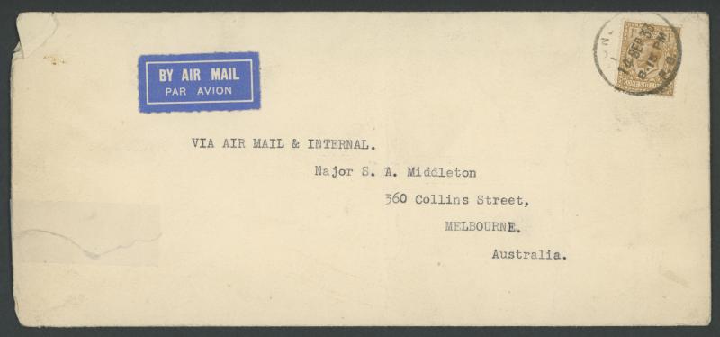 interrupted by monsoons in Malaya & damage caused in a poor landing at Karachi where the flight was abandoned due to Weir falling ill, AAMC 265 (two carried), Cat $1500. Illustrated in Volume Two at page 209, where two other covers are recorded.