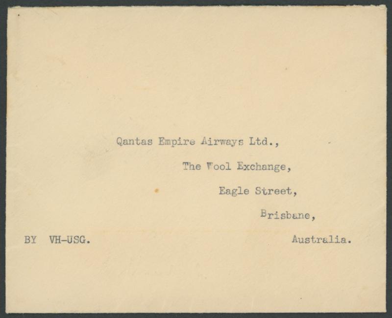 'City of Basra' was damaged during takeoff from Salisbury; mails were transferred to 'City of Delhi' which landed in a swamp the same day. Unlisted in the AAMC. The only recorded cover to Australia. Illustrated in Volume Two at page 184. (Image1) (Image2)