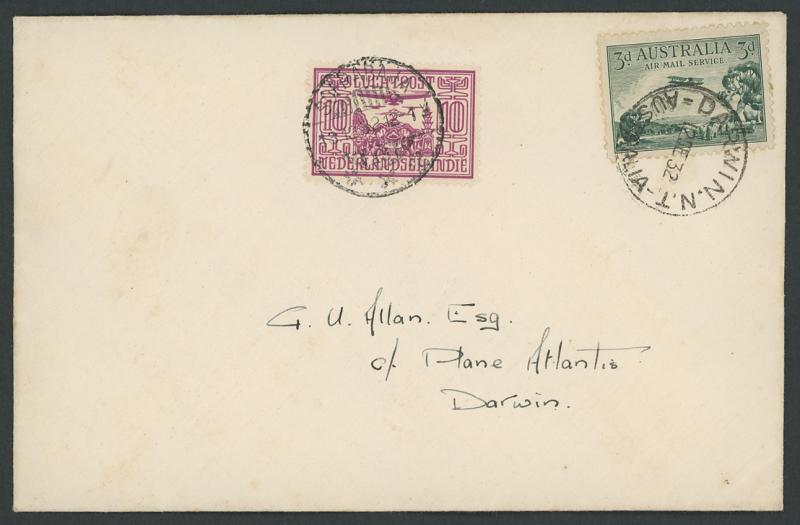 1932 (Dec 12) Australia-England per 'Atlantis' with 3d Air tied by 'DARWIN NT/AUSTRALIA' cds and Netherlands Indies 10c Air tied by