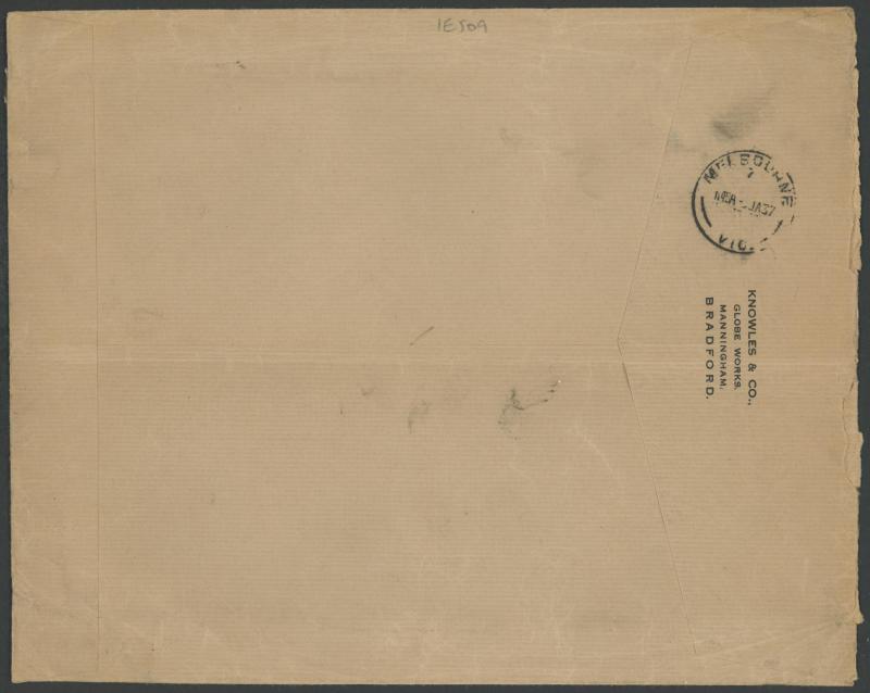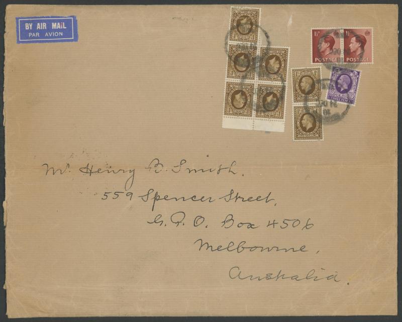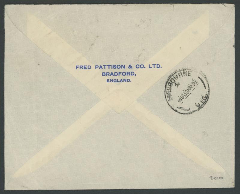 1936 (Dec 24; Christmas Eve) England-Australia large cover (255x205mm) to Melbourne per 'Centaurus' which developed a fault at