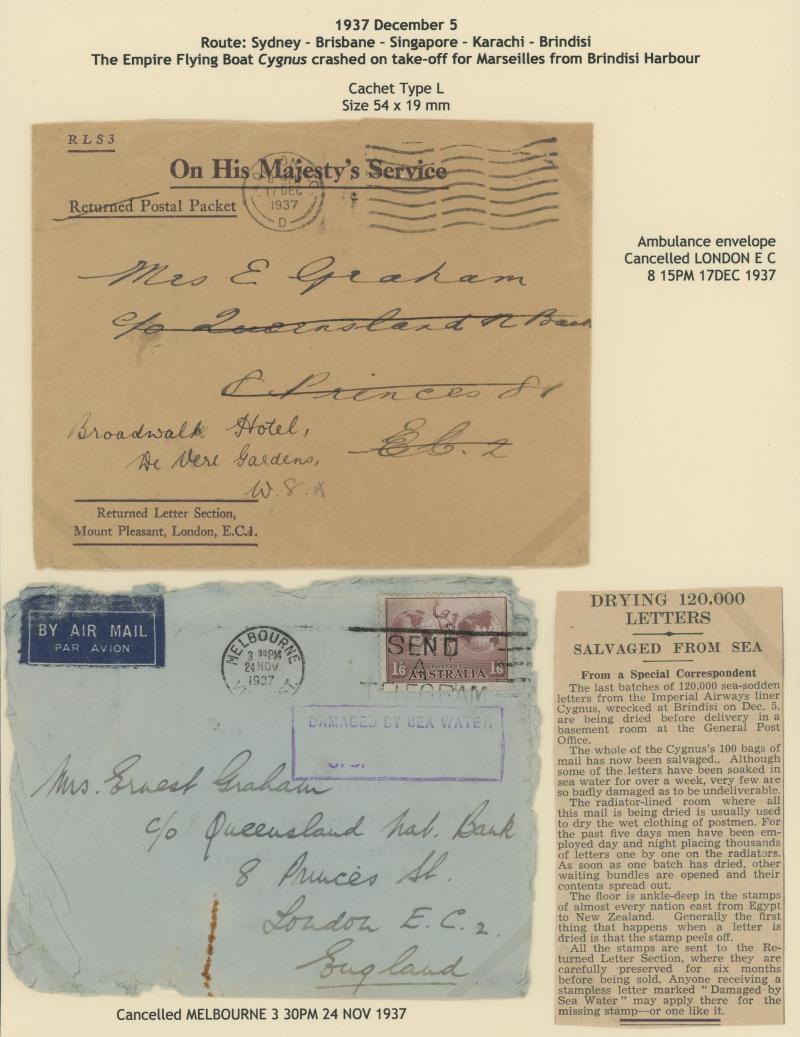 1937 (Nov-Dec) Australia-England per 'Sydney' from Sydney-Singapore; then per 'Arethusa' to Karachi; and per 'Cygnus' to England