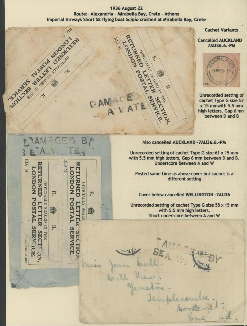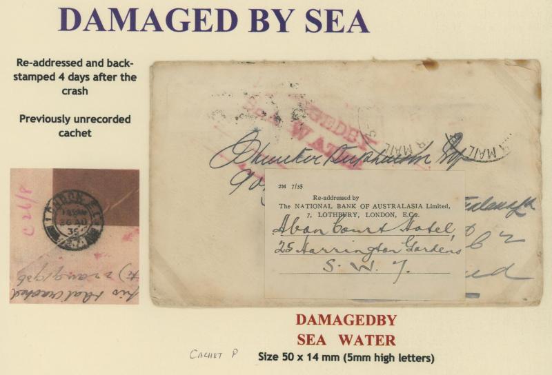 instructional handstamps including the huge 'DAMAGED BY SEA' (120x10mm), 'DAMAGED BY/SEAVATER' (damaged 'W'), 'DAMAGEDBY/SEA WATER' (no space in first line), 'Damaged By SEA WATER', boxed 'DAMAGED BY WATER' and the French 'AVION ACCIDENTE', British &