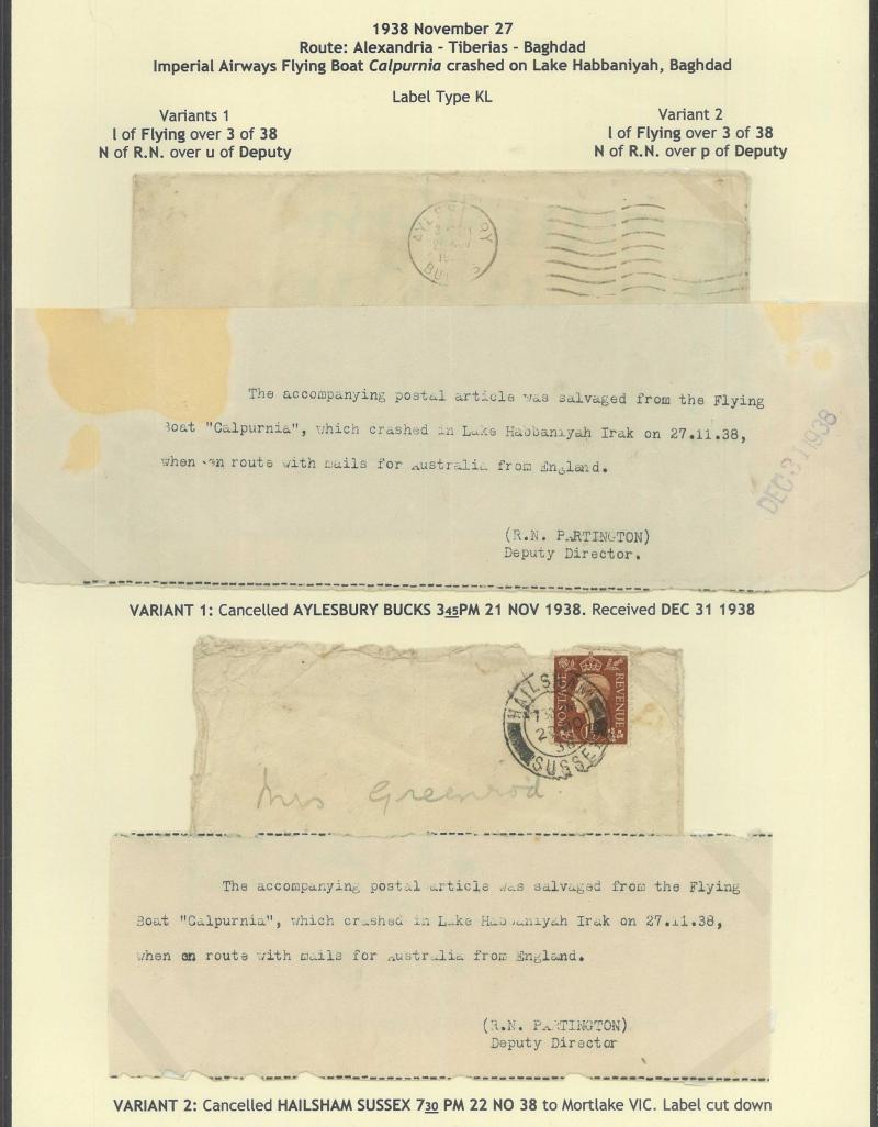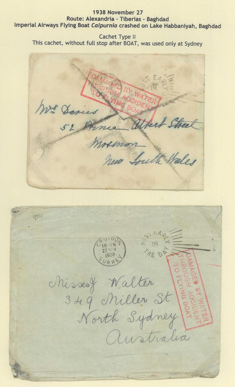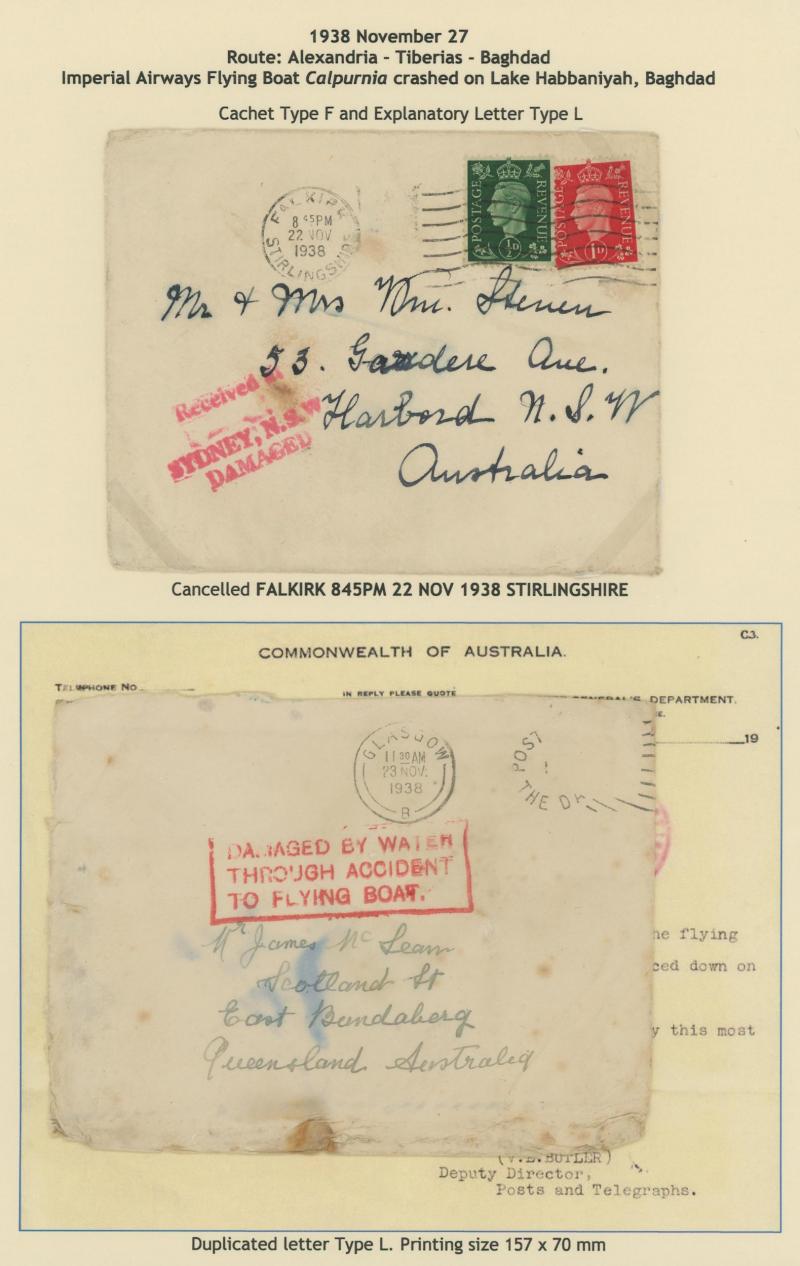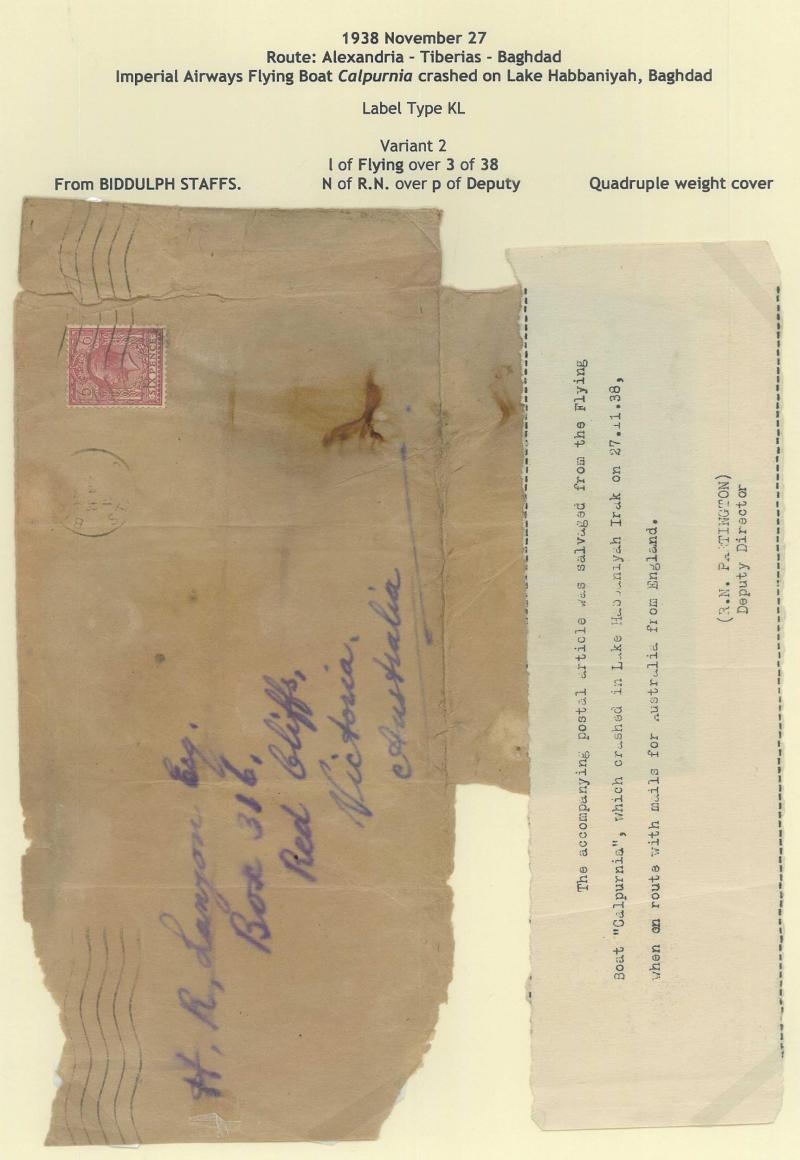 1938 (Sep) England-Australia Empire Air Mail Scheme (EAMS) service per 'Calpurnia' which crashed into Lake Habbaniyah (Iraq), with