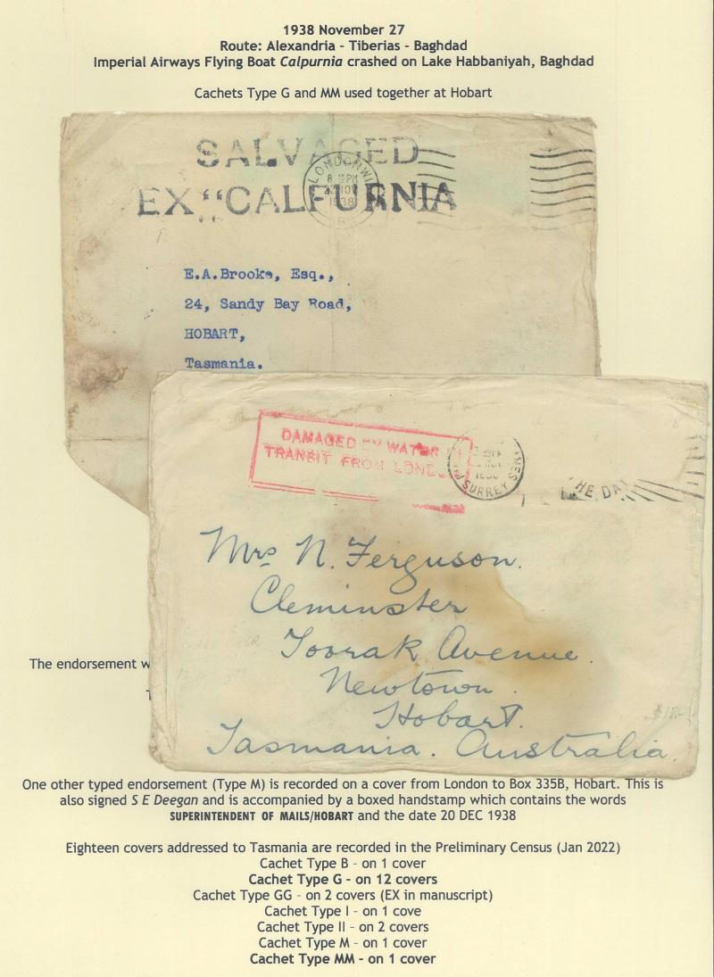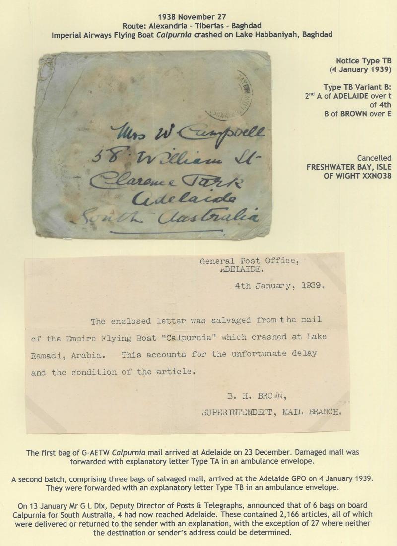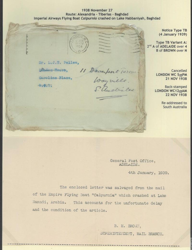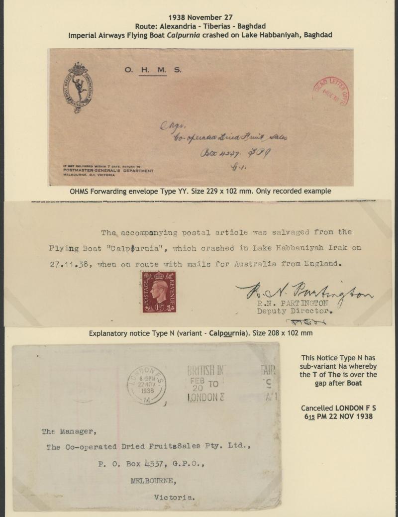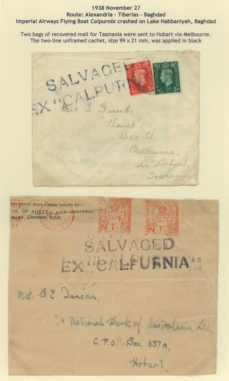 1938 (Sep) England-Australia Empire Air Mail Scheme (EAMS) service per 'Calpurnia' which crashed into Lake Habbaniyah (Iraq), with