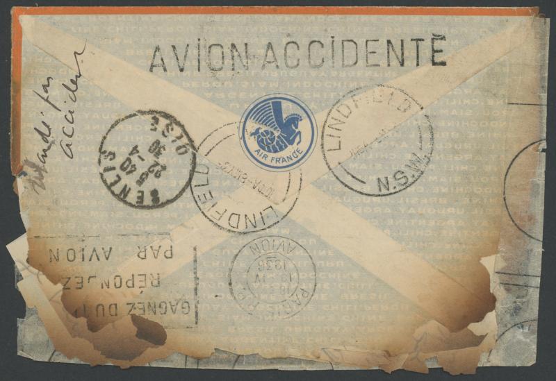 1936 (Apr 18) social cover from France to New South Wales per Belgian Sabena cargo plane that crashed soon after departing Le