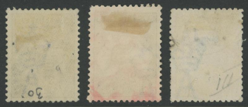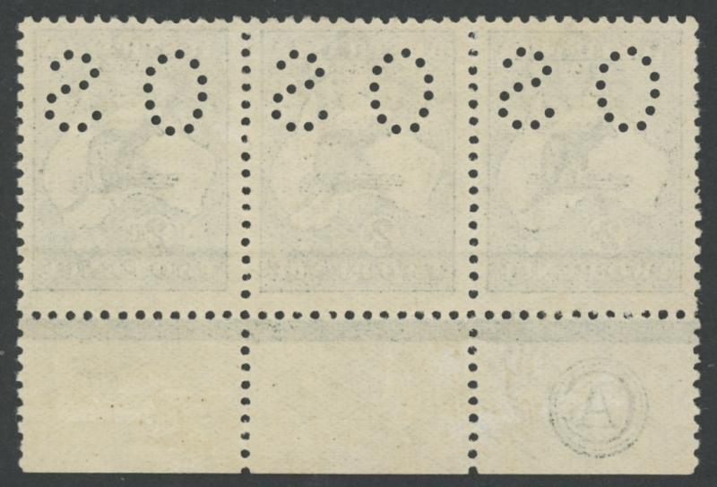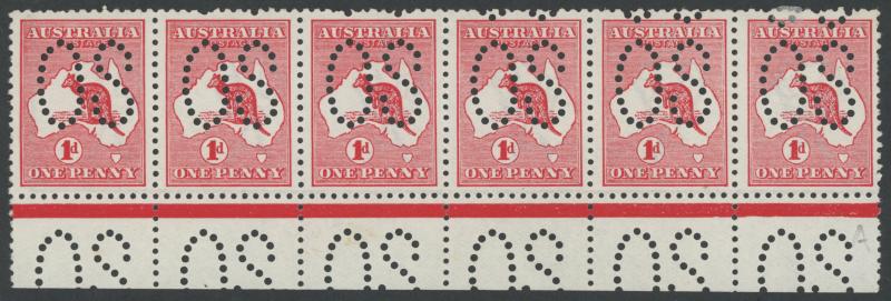 1d red Die I SG O2 Plate A No Monogram strip of 3 ACSC 2ba(A)z in a marginal strip of 6 from the base of the sheet (wihtout margins