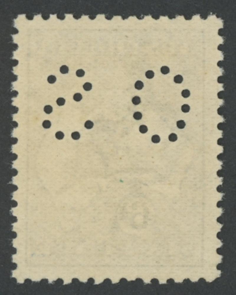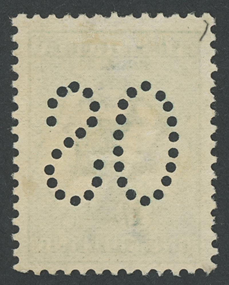that this variety "is rare. It is not constant in all printings ... Sheets with the flaw were out to one side and subsequently punctured Small OS ... Other sheets were issued with the offending unit removed ... perhaps as many as 20 used examples