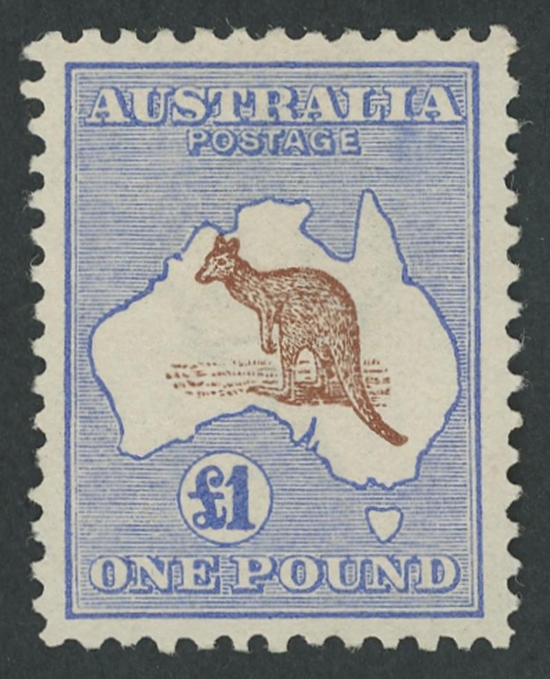 £1 red-brown & blue ACSC 51B (SG 15), rich colours, well-centred, small hinge remainder, Cat $4500 (£3000). (Image1) (Image2)