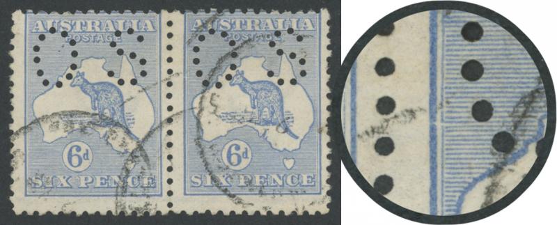 6d blue SG O23 horizontal pair the right-hand unit Substituted Cliché Die IIA [Pos R60] ACSC 17bb(1)ja, poorly-centred, a couple of
